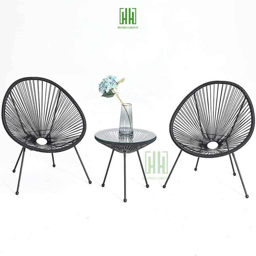 – Chất liệu bộ bàn ghế ban công: Khung kim loại sơn tĩnh điện – Dây nhựa đan sợi chuẩn xuất khẩu.