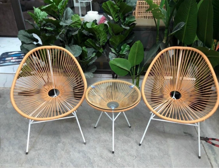 Bàn ghế ban công giả mây lõi thép thư giãn decor phòng khách sân vườn cafe