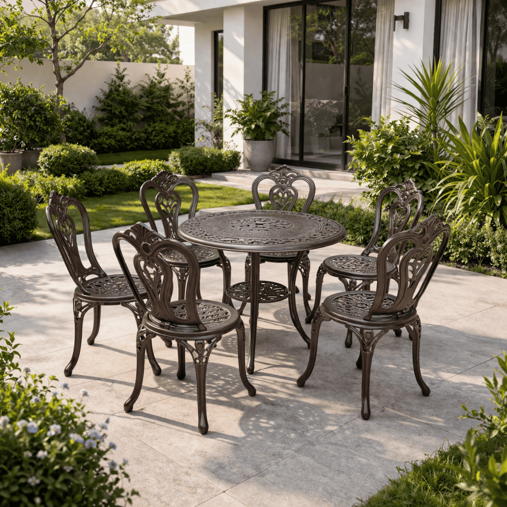 Bàn Ghế Sân Vườn Ngoài Trời BA-T80-6GN là bộ sản phẩm cao cấp dành cho không gian ngoài trời như sân vườn, ban công, quán café hay khu nghỉ dưỡng. Với thiết kế hiện đại kết hợp tinh tế, sản phẩm mang lại vẻ đẹp sang trọng và độ bền vượt trội trong mọi điều kiện thời tiết.