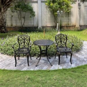 Đặc tính nổi bật của chất liệu nhôm đúc là nhẹ, mềm dẻo có độ bền cao, dễ tạo hình uốn nắn, khác hẳn với chất liệu sắt thép, hay đồng hoặc gang nó rất nặng, cứng và dễ gãy, chính vì vậy mà bàn ghế sân vườn nhôm đúc thường có giá thành cao hơn các loại kia nhưng lại được nhiều khách hàng lựa chọn bởi nó được phủ thêm một lớp sơn tĩnh điện cao cấp nữa nó giúp cho sản phẩm không bị chày xước khi bị va đập không bị han gỉ khi để ngoài trời và giữ được độ bền màu lâu hơn khi sử dụng.