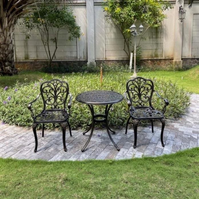 Bàn ghế sân vườn nhập khẩu màu đồng là mẫu bàn ghế đang được ưa chuộng nhất hiện nay, vì nó sử dụng chất liệu nhôm đúc cao cấp kết hợp với lớp sơn tĩnh điện và là hàng nhập khẩu 100%, đây là sản phẩm được nhiều người tiêu dùng lựa chọn sử dụng. Bởi vì nó không bị oxy hóa hay han gỉ khi để ở ngoài trời làm bàn tiếp khách sân vườn hay bàn cafe, ban công rất sang trọng.