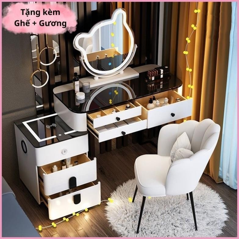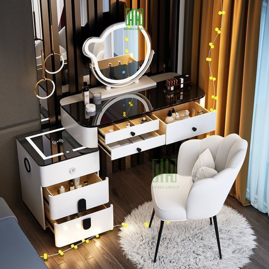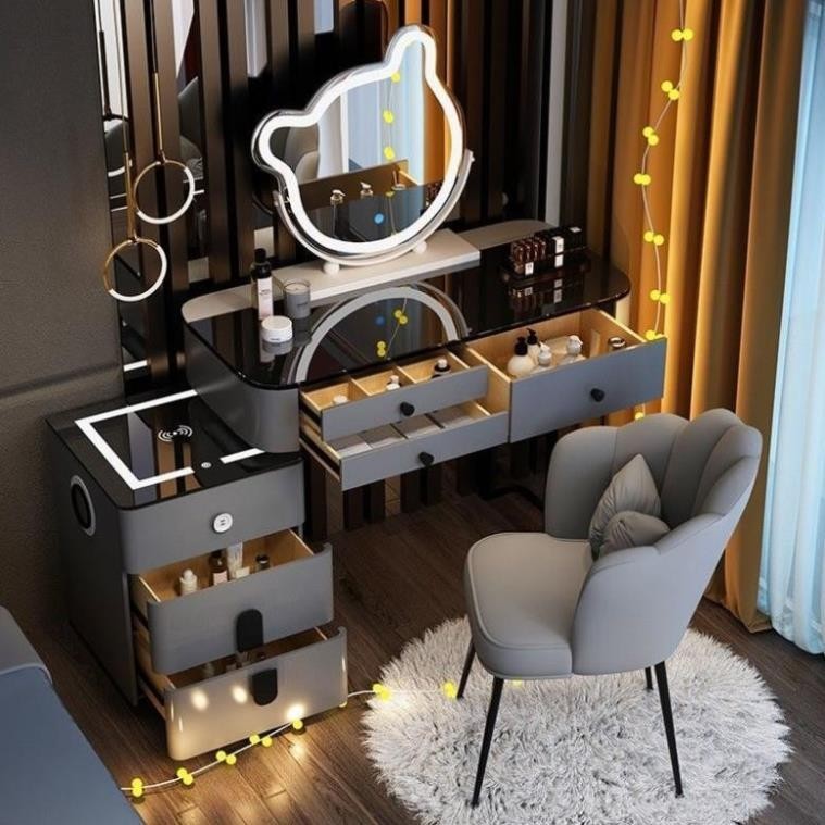 – Bàn trang điểm cá nhân, bàn trang điểm trang trí phòng ngủ, lưu trữ mỹ phẩm, nữ trang, đồ dùng trang điểm cho chị em phụ nụ, tiện nghi sang trọng diện tích sử dụng lớn với thiết kế thông minh.
