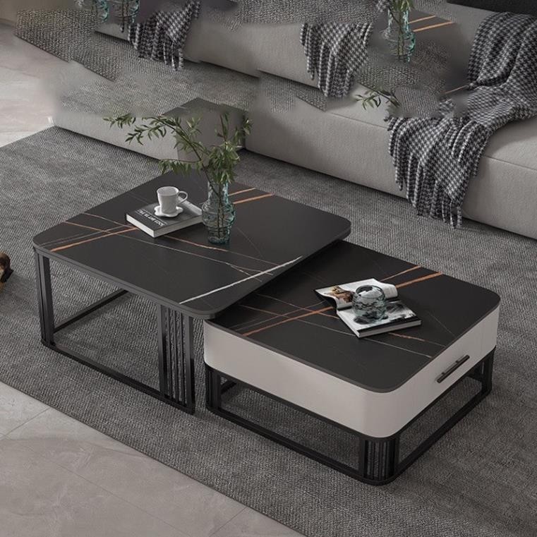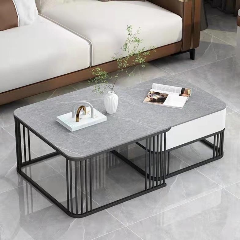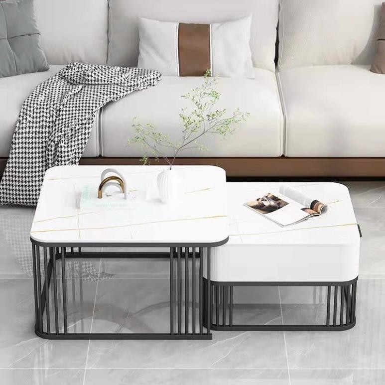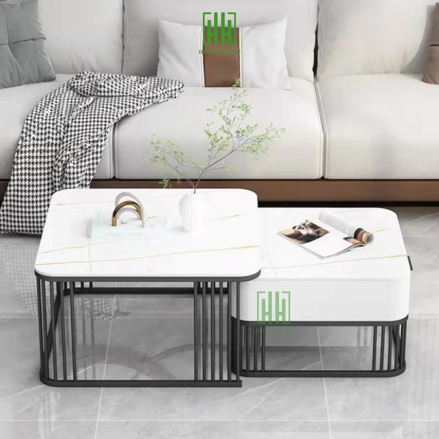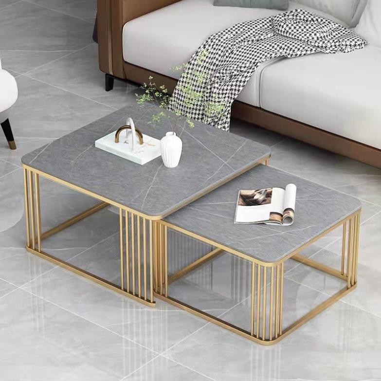 Bàn trà đôi Sofa phòng khách mặt đá ceramic chân kim loại sang trọng, hiện đại