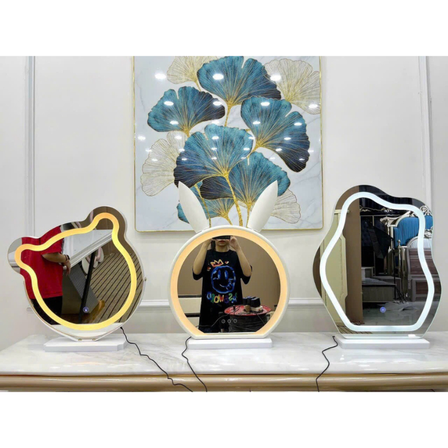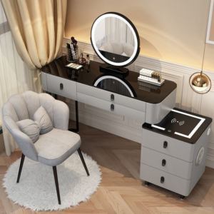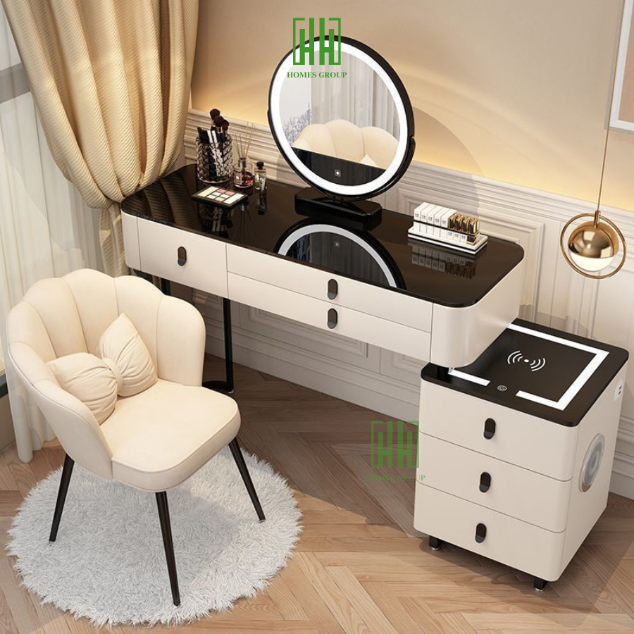 Bàn Trang Điểm Bàn Phấn Thông Minh Có Gương Đèn Ứng 3 Màu Sạc Không Dây L Led Cảmoa Buetooth,2 Cổng USB Tiện nghi T02