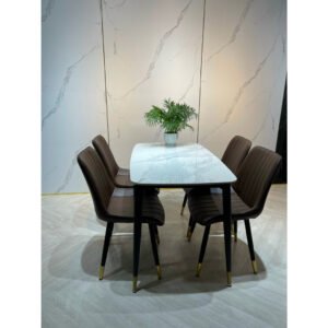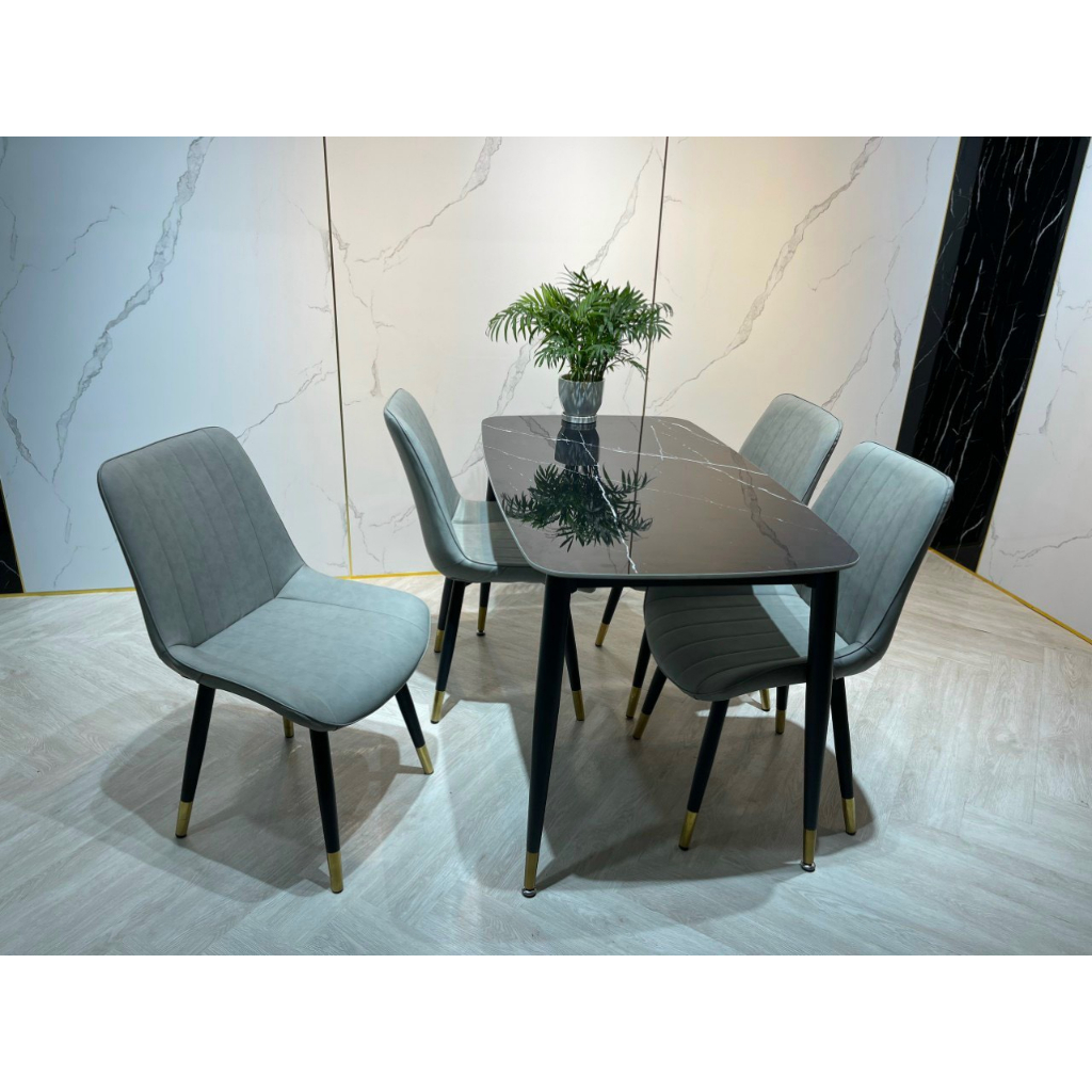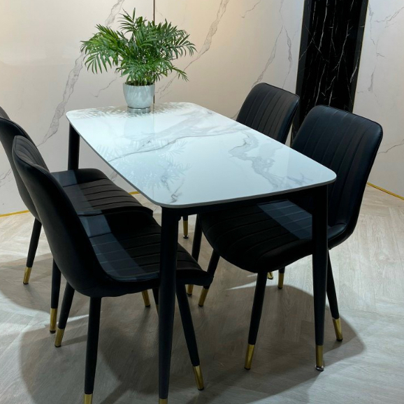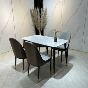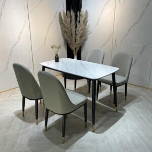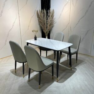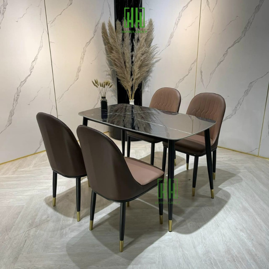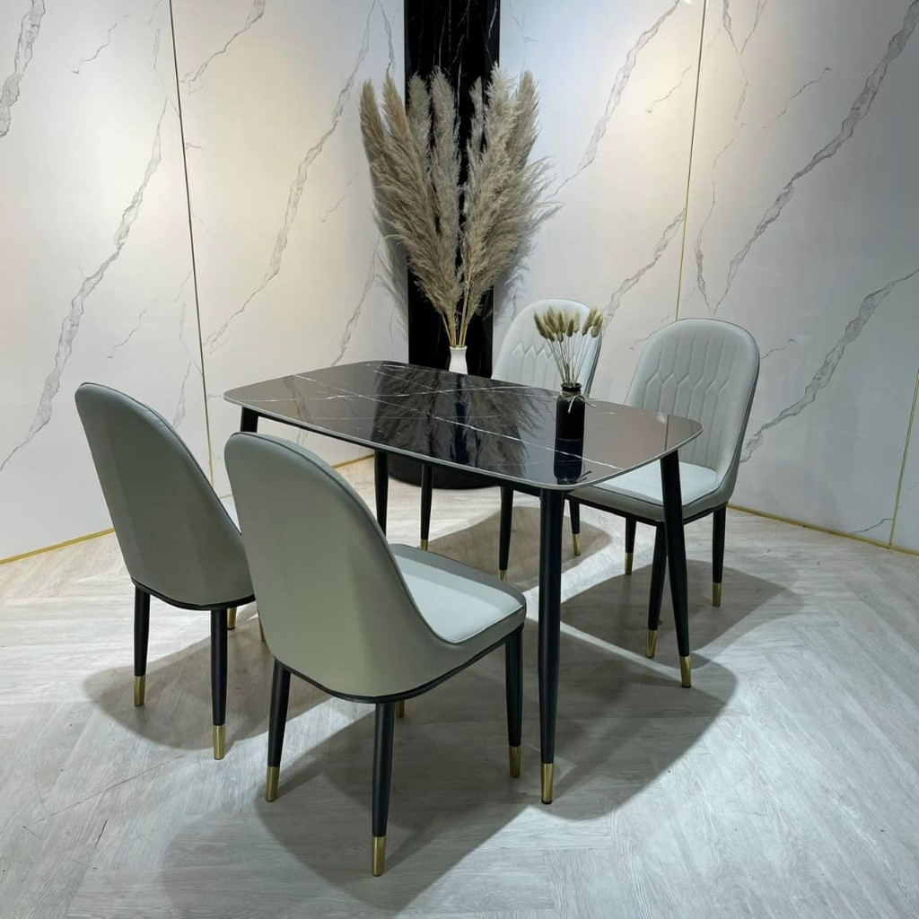 Bộ bàn ăn 4 ghế nhập khẩu cao cấp là sự kết hợp hoàn hảo giữa chất lượng và thẩm mỹ. Với mặt bàn làm từ đá marble nhập khẩu cao cấp, bộ sản phẩm không chỉ đẹp mắt mà còn có độ bền cao, dễ dàng vệ sinh và chống thấm nước, chống trầy xước. Khung bàn được làm từ thép không gỉ, sơn tĩnh điện giúp tăng khả năng chống chịu thời tiết và các tác nhân bên ngoài. Ghế ăn được bọc da PU cao cấp hoặc vải nỉ mềm mại, mang lại cảm giác thoải mái và dễ chịu khi sử dụng. Thiết kế của bộ bàn ăn mang phong cách hiện đại, tinh tế, phù hợp với nhiều không gian nội thất khác nhau, từ phòng ăn gia đình, nhà hàng, khách sạn đến quán cà phê.