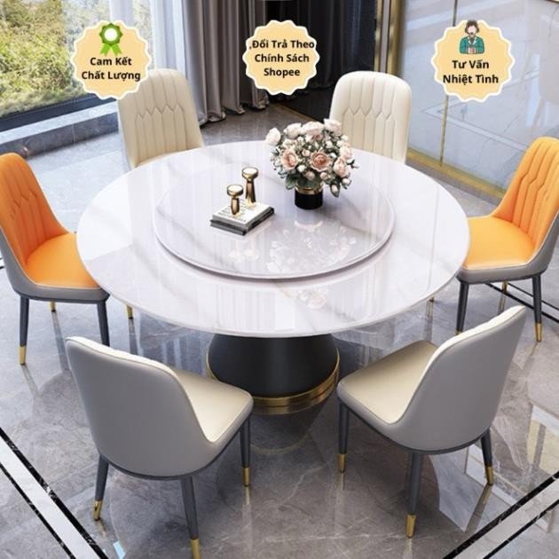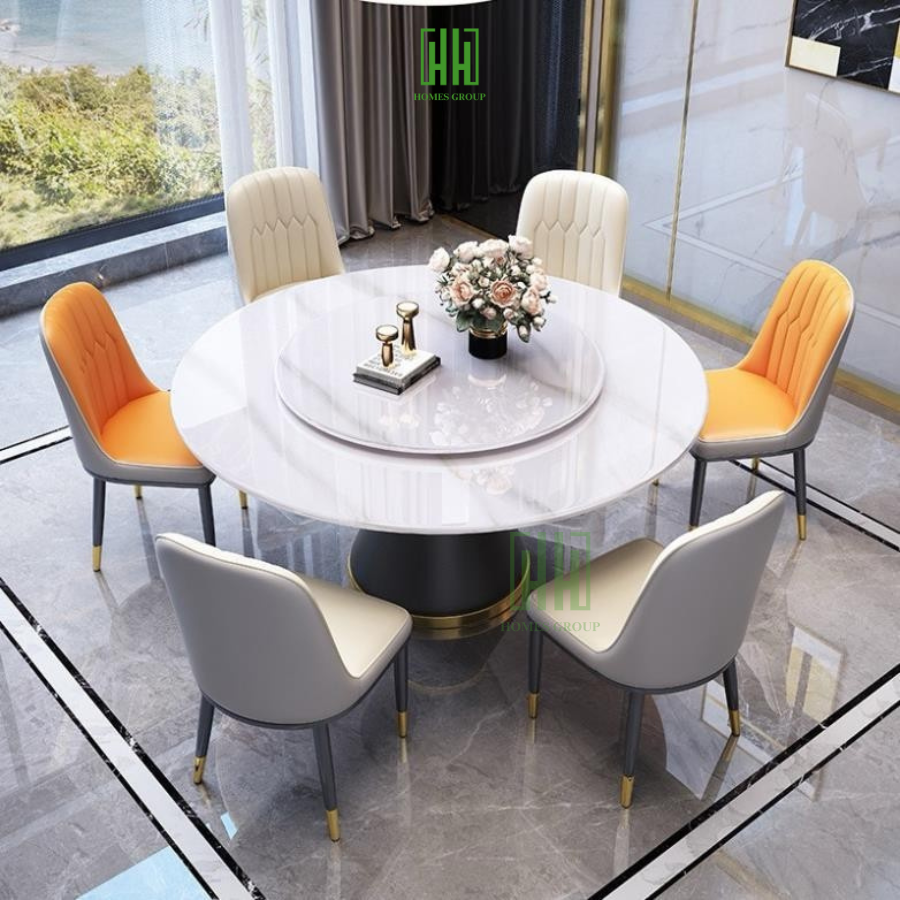 Bộ Bàn Ăn Xoay Tròn 2 Mặt Đá + 6 ghế hoặc 4 ghế Monet Nhập khẩu cao cấp