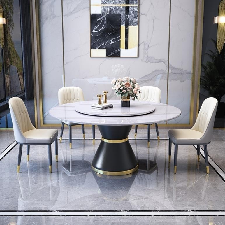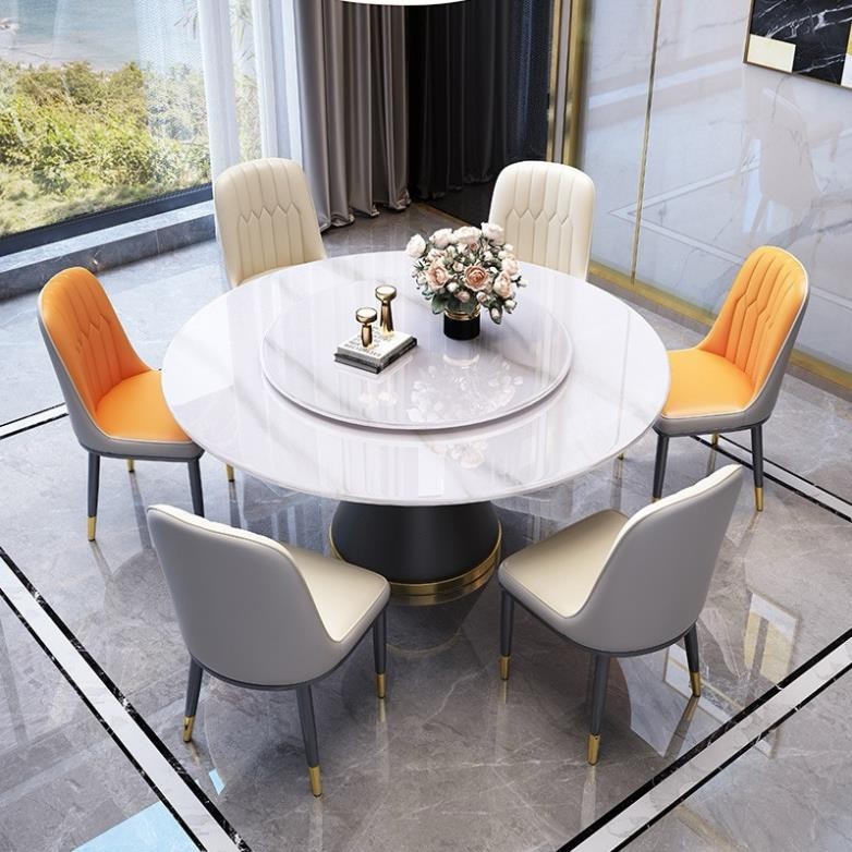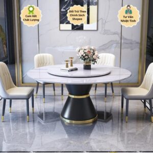 Bộ bàn ăn xoay tròn là sự kết hợp hoàn hảo giữa thiết kế hiện đại và tính tiện dụng cao. Mặt bàn được làm từ đá tự nhiên hoặc kính cường lực cao cấp, mang lại vẻ đẹp sang trọng và khả năng chống xước, chống thấm nước hiệu quả. Khung bàn và ghế được làm từ thép sơn tĩnh điện hoặc gỗ tự nhiên, tạo nên sự chắc chắn và bền bỉ. Ghế được bọc da PU hoặc vải nỉ cao cấp, mang đến cảm giác ngồi thoải mái và phong cách thời thượng. Đặc biệt, thiết kế xoay tròn của mặt bàn giúp bạn dễ dàng chia sẻ các món ăn và tạo nên không gian ăn uống ấm cúng, tiện nghi.