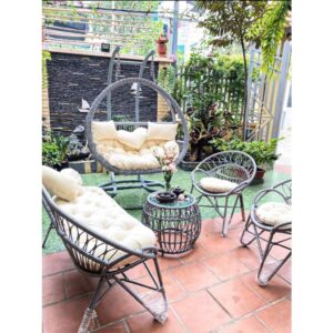 Hãy là người đầu tiên nhận xét “Bộ bàn ghế ban công sân vườn kèm xích đu mây nhựa khung thép sơn tĩnh điện”