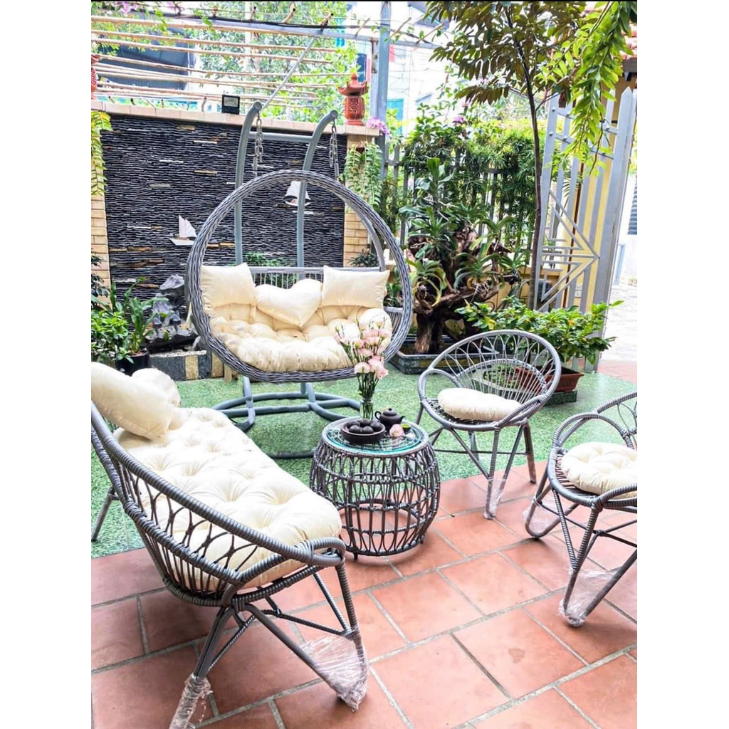 Xích đu thư giãn: Thiết kế êm ái, có thể ngả nhẹ, mang lại cảm giác thư thái