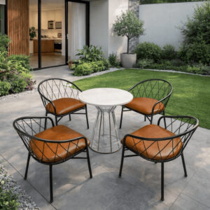 Bộ bàn ghế ban công sân vườn được thiết kế theo phong cách hiện đại, tinh tế, phù hợp với nhiều không gian như ban công, sân vườn, quán cafe, nhà hàng.