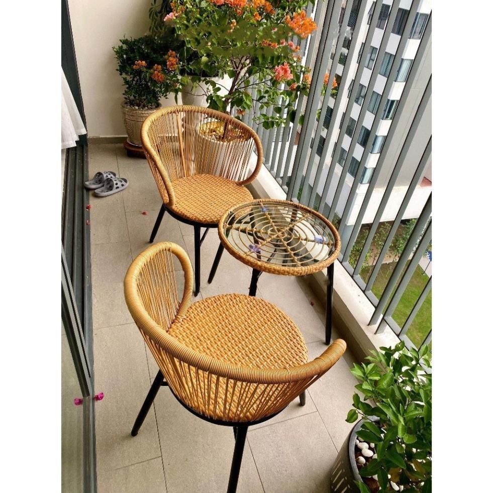 • Thư giãn: Bộ bàn ghế ban công lưng loe mây nhựa là nơi lý tưởng để bạn thư giãn, đọc sách, hoặc thưởng thức tách cà phê buổi sáng trong không gian ngoài trời.