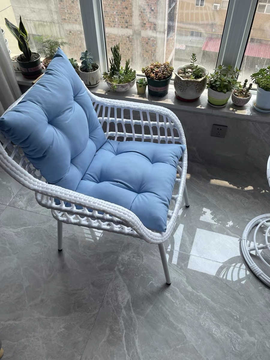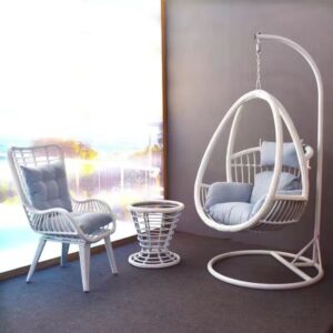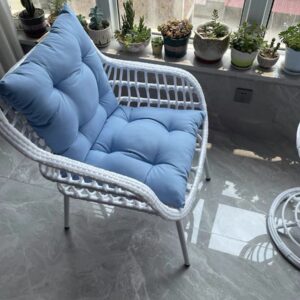 - Chất liệu: Khung thép sơn tĩnh điện chắc chắn, đan dây mây nhựa cao cấp, chống thấm nước và tia UV.