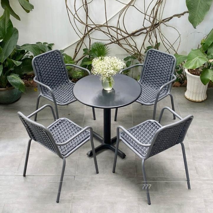 Bộ bàn ghế cafe ngoài trời khung thép mẫu NK03
