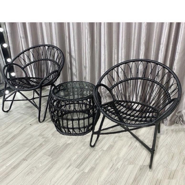 _ Bộ bàn ghế ban công thư giãn nguyên kiện; khi nhận hàng anh chị chỉ bóc lớp sốp bọc hàng ra và sử dụng. Không cần phải lắp ráp.