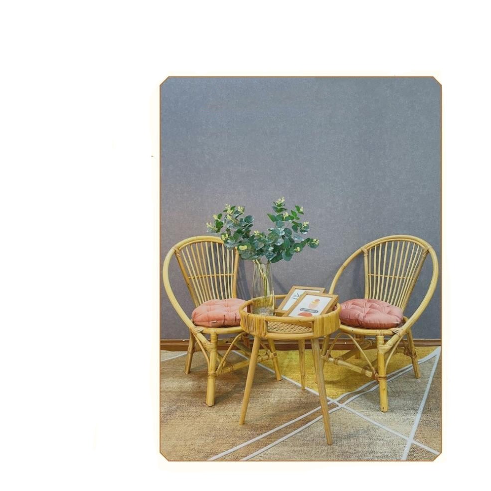 Combo10 : Bộ 2 ghế mây cao cấp lưng cao kết hợp với bàn mây đan Fenny ( Ghế kèm nệm bông)