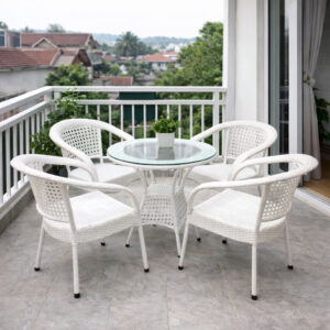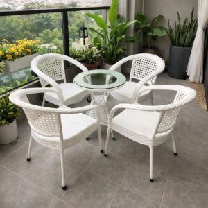 Bộ bàn ghế mây nhựa được thiết kế hiện đại, tinh tế, là lựa chọn hoàn hảo cho không gian ban công, sân vườn hay quán cafe ngoài trời.
