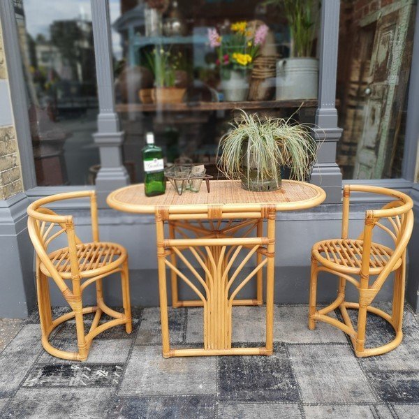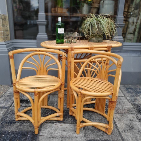 Bộ bàn ghế mây BM03 bao gồm: Một bàn và hai ghế mây đơn, được cấu tạo từ những thanh song mây tuyển chọn một cách tỉ mỉ