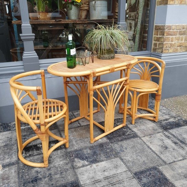 Bộ bàn ghế mây tự nhiên phong cách hoài cổ dùng trang trí phòng khách ban công quán cafe