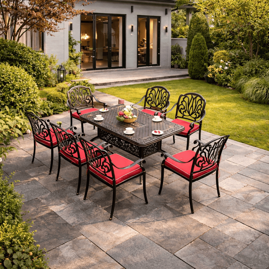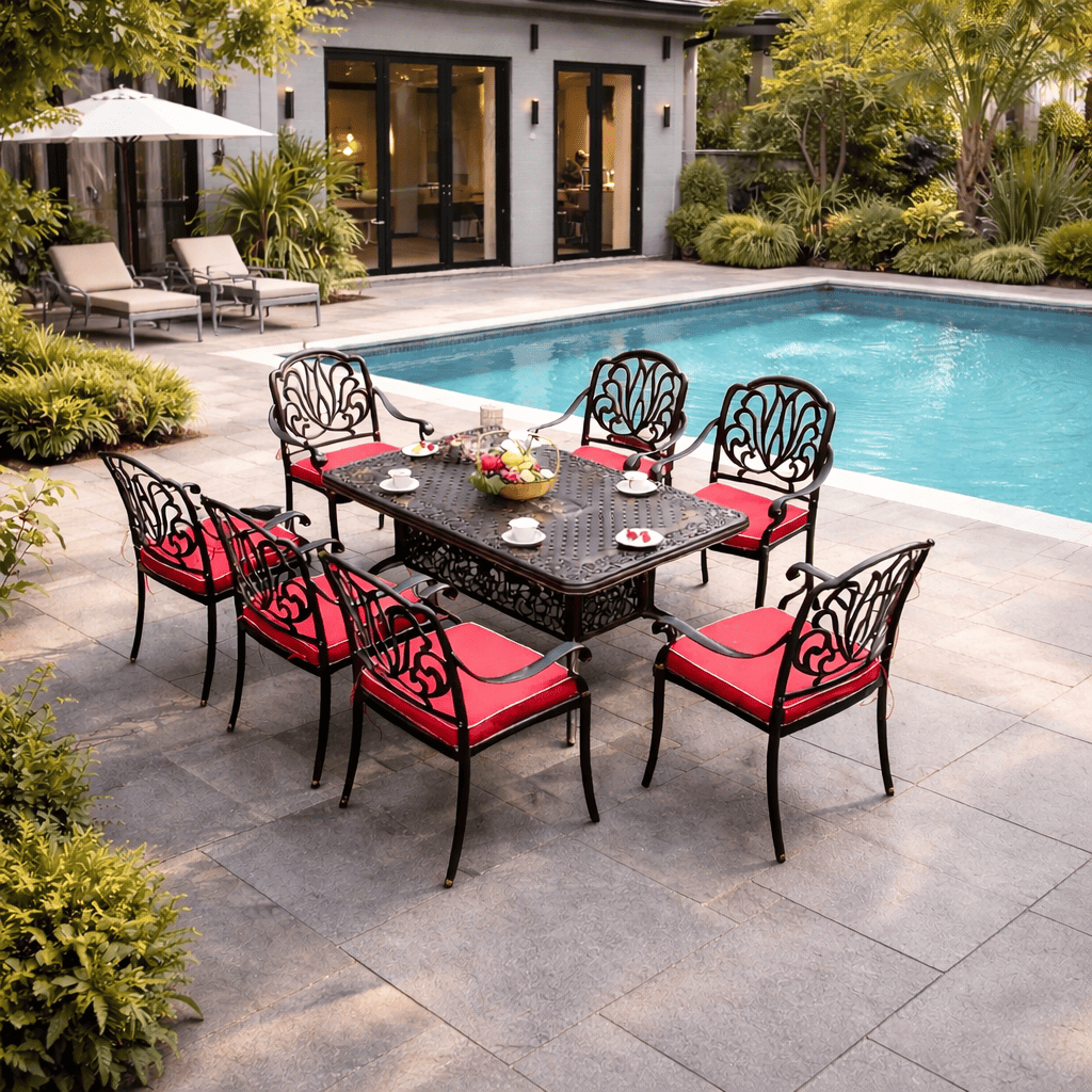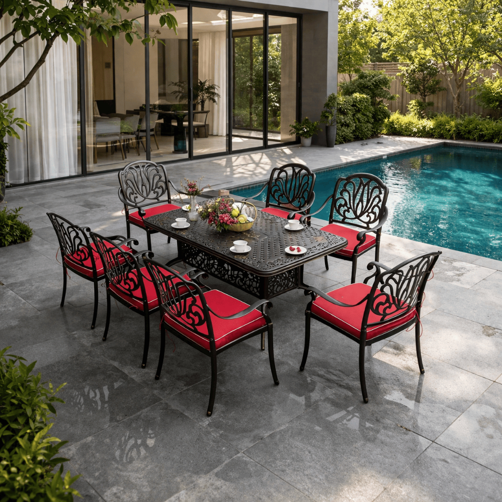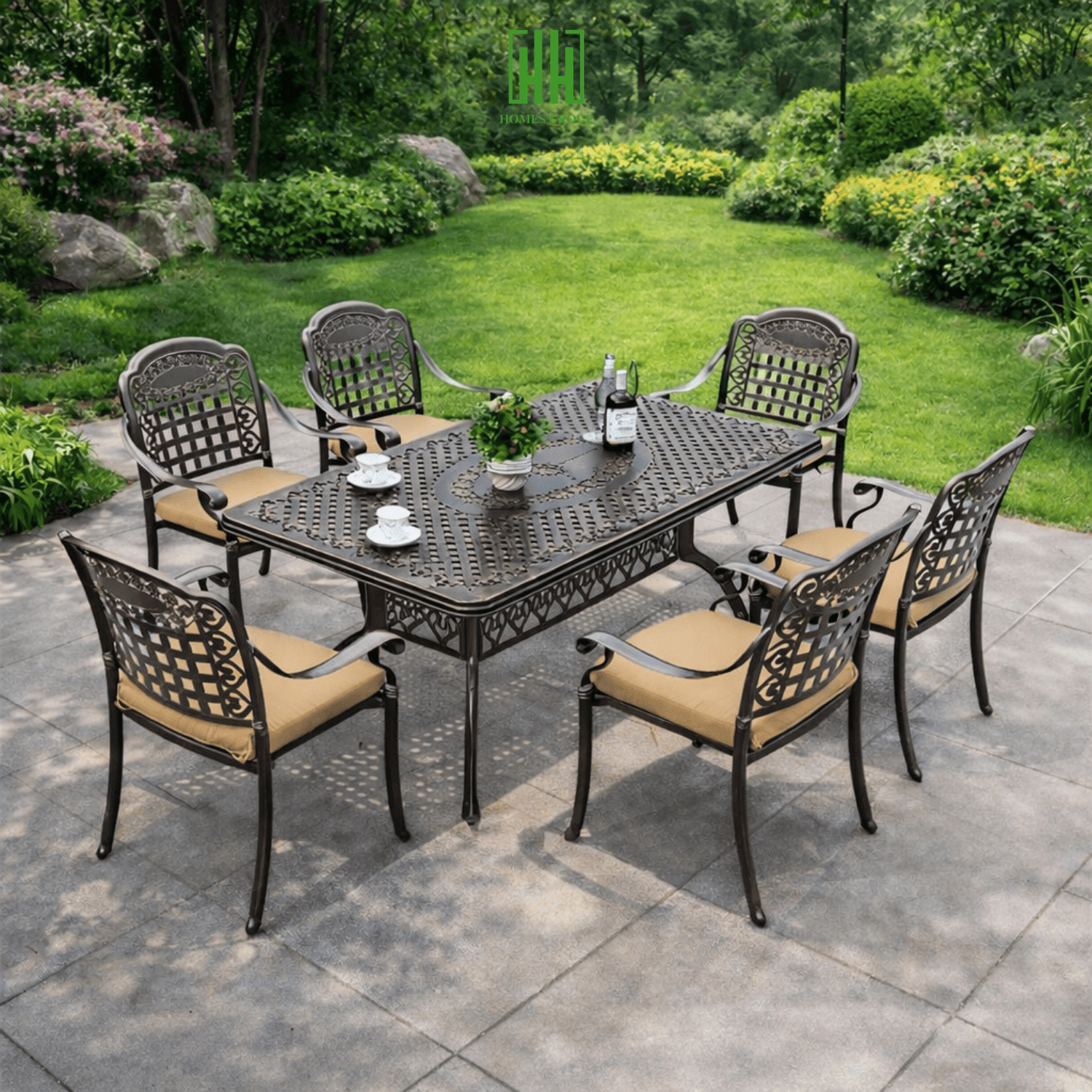 Bộ bàn ghế ngoài trời nhôm đúc BA-D150 là dòng sản phẩm cao cấp dành cho sân vườn, biệt thự, ban công hoặc khu vực hồ bơi, mang đến vẻ đẹp sang trọng và độ bền vượt trội.