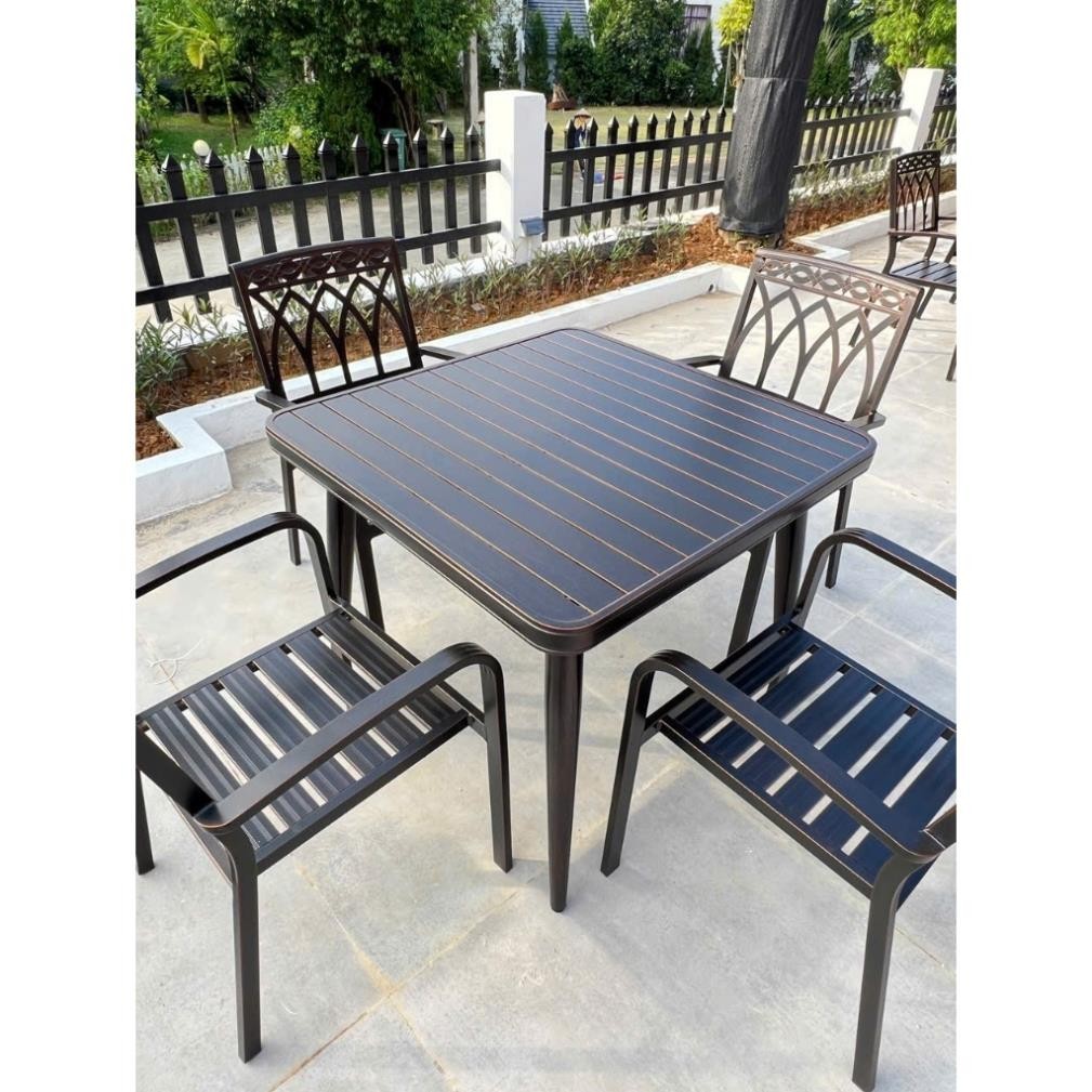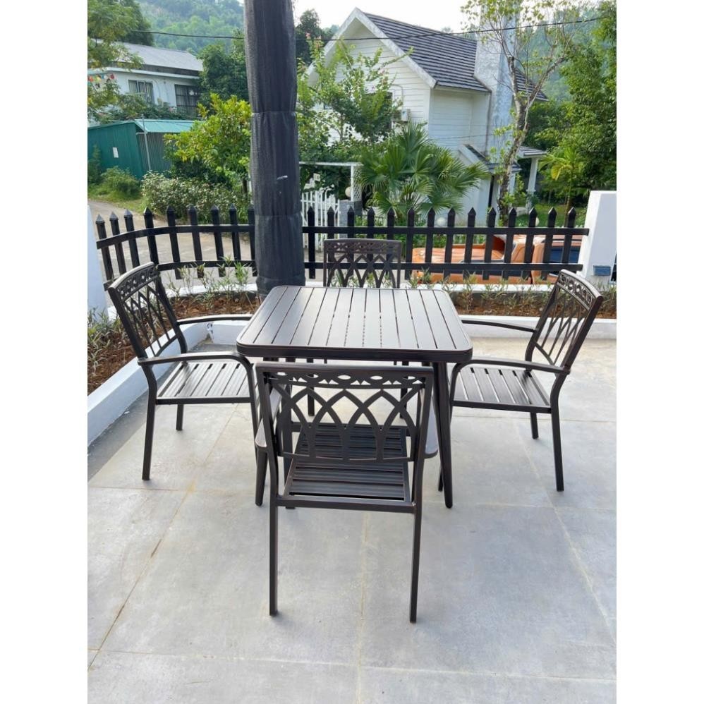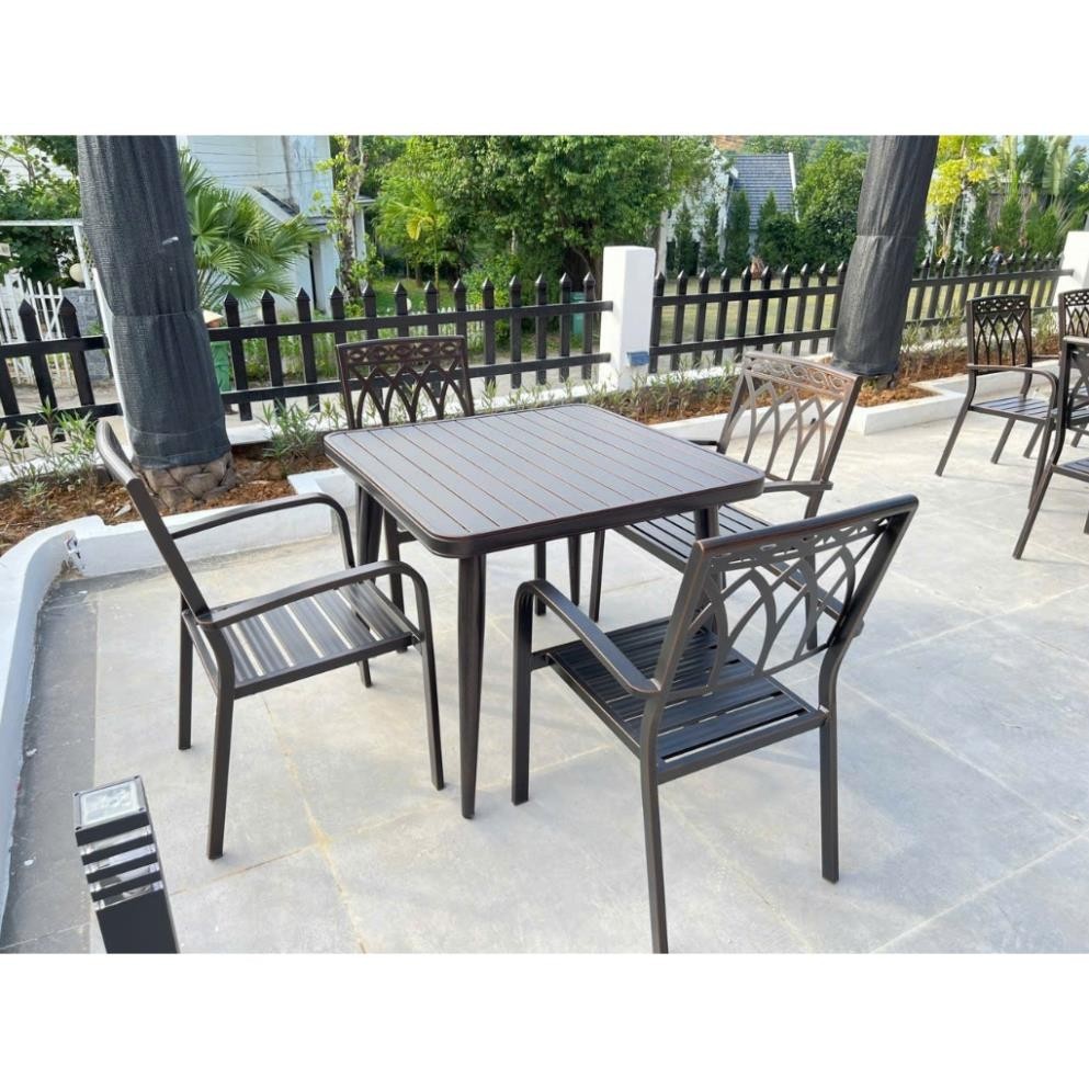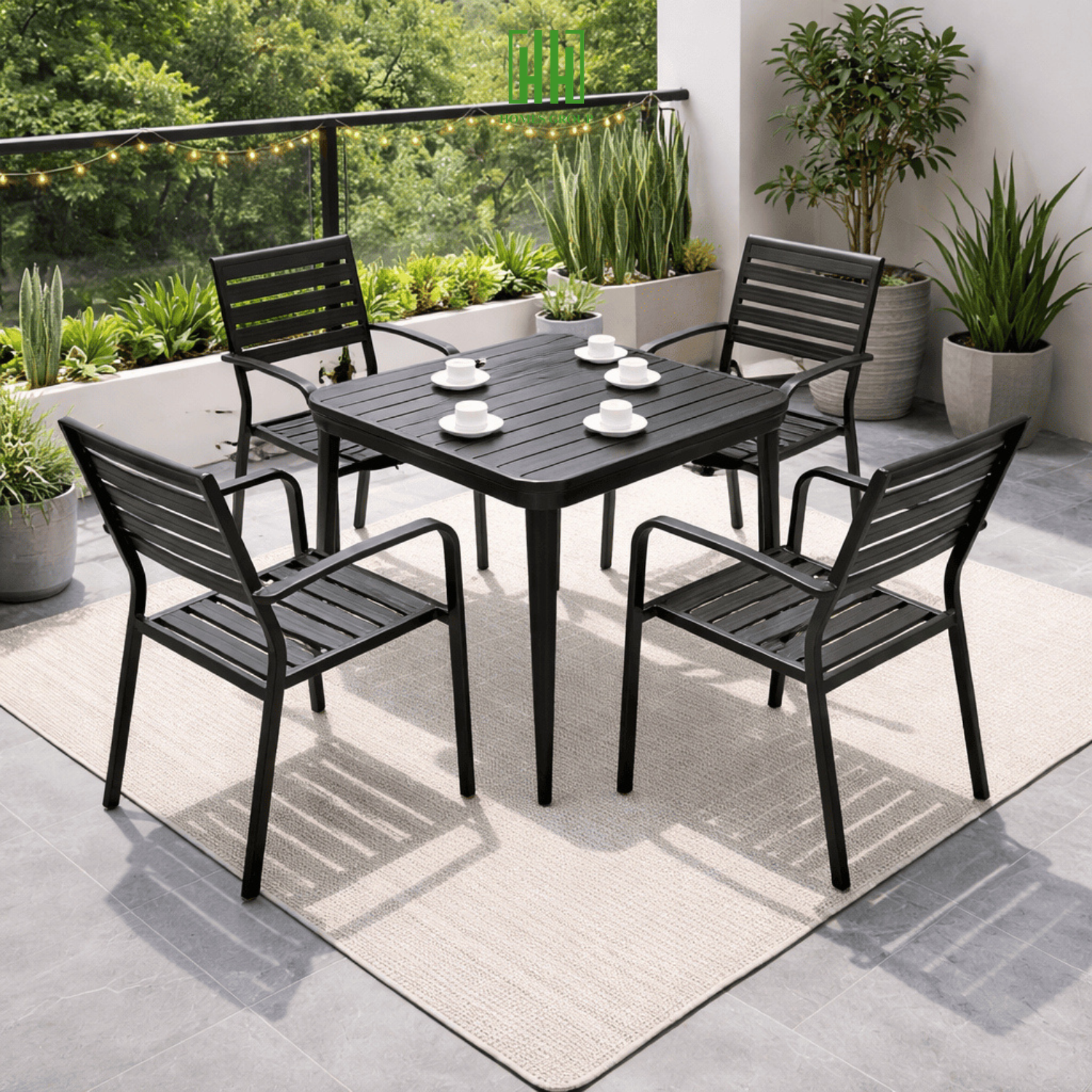 Bộ bàn ghế ngoài trời nhôm đúc vuông là dòng sản phẩm cao cấp, thiết kế sang trọng, độ bền vượt trội, phù hợp cho không gian sân vườn và ban công hiện đại.