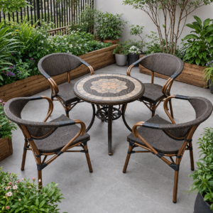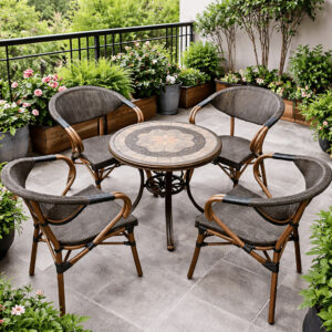 Bộ Bàn Ghế Sân Vườn D60 Nhập Khẩu, thiết kế nhỏ gọn, chất liệu bàn bằng nhôm đúc mềm dẻo tạo nên những hoa văn bắt mắt cho sản phẩm. Với bộ bàn ghế này bạn có thể sử dụng như một bộ bàn ngồi uống café, bàn trà, trên sân thượng hay bàn ban công chung cư, ban công biệt thự, ban công nhà phố, hành lang biệt thự liền kề, hay ban công phòng khách sạn, resort….