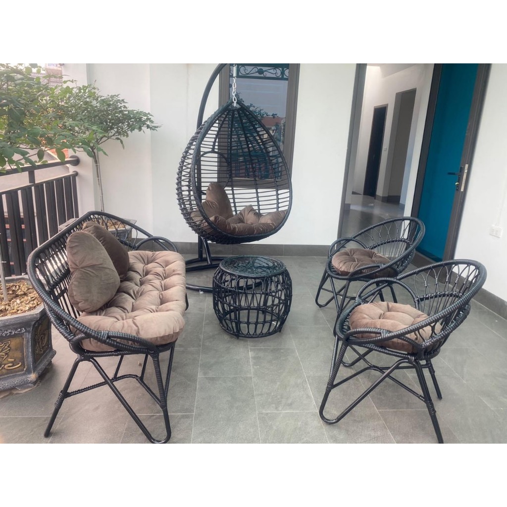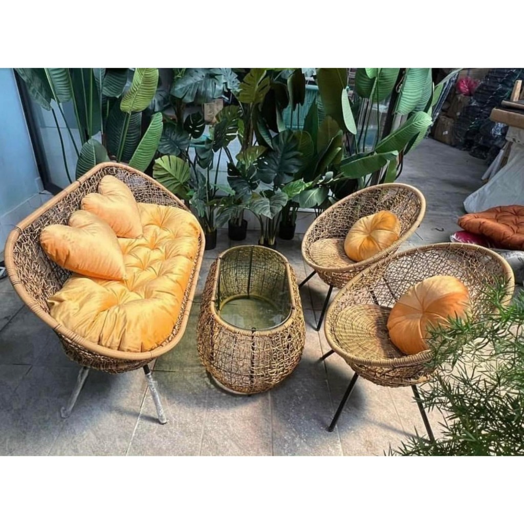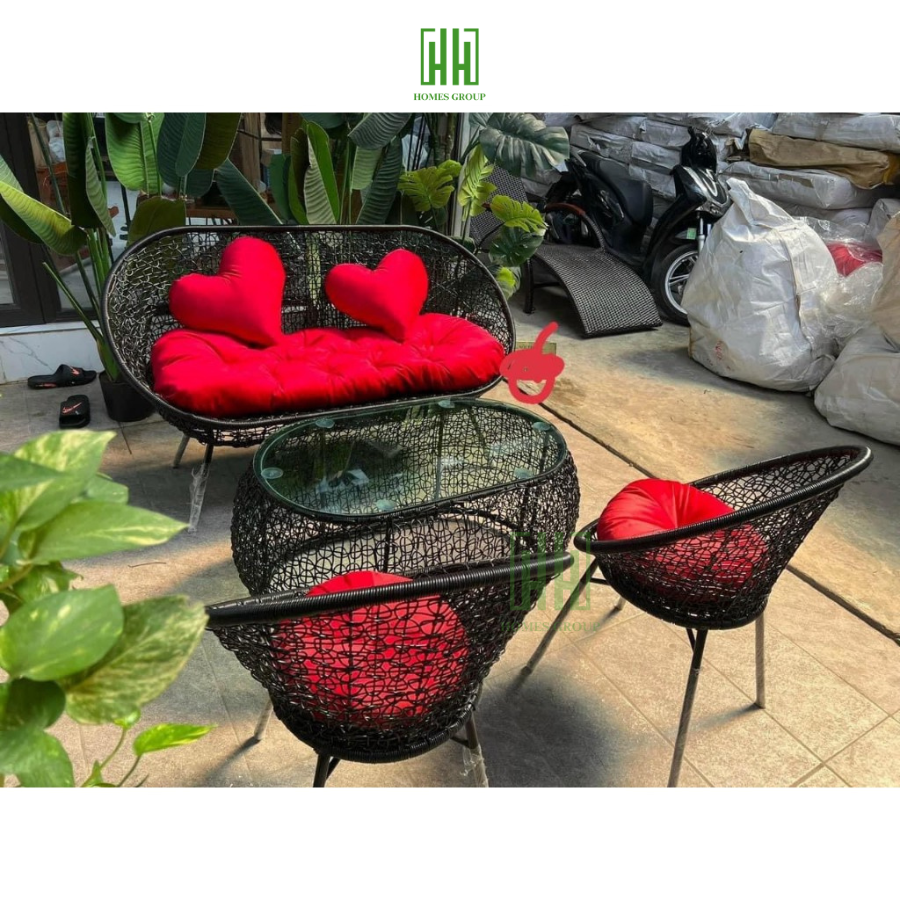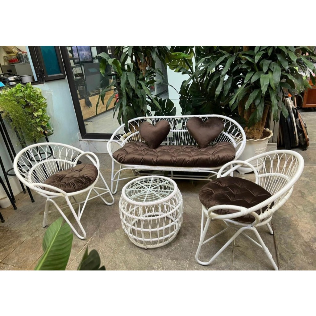 Bộ bàn ghế sân vườn giả mây lõi thép cao cấp dùng sân vườn quán cafe sang trọng