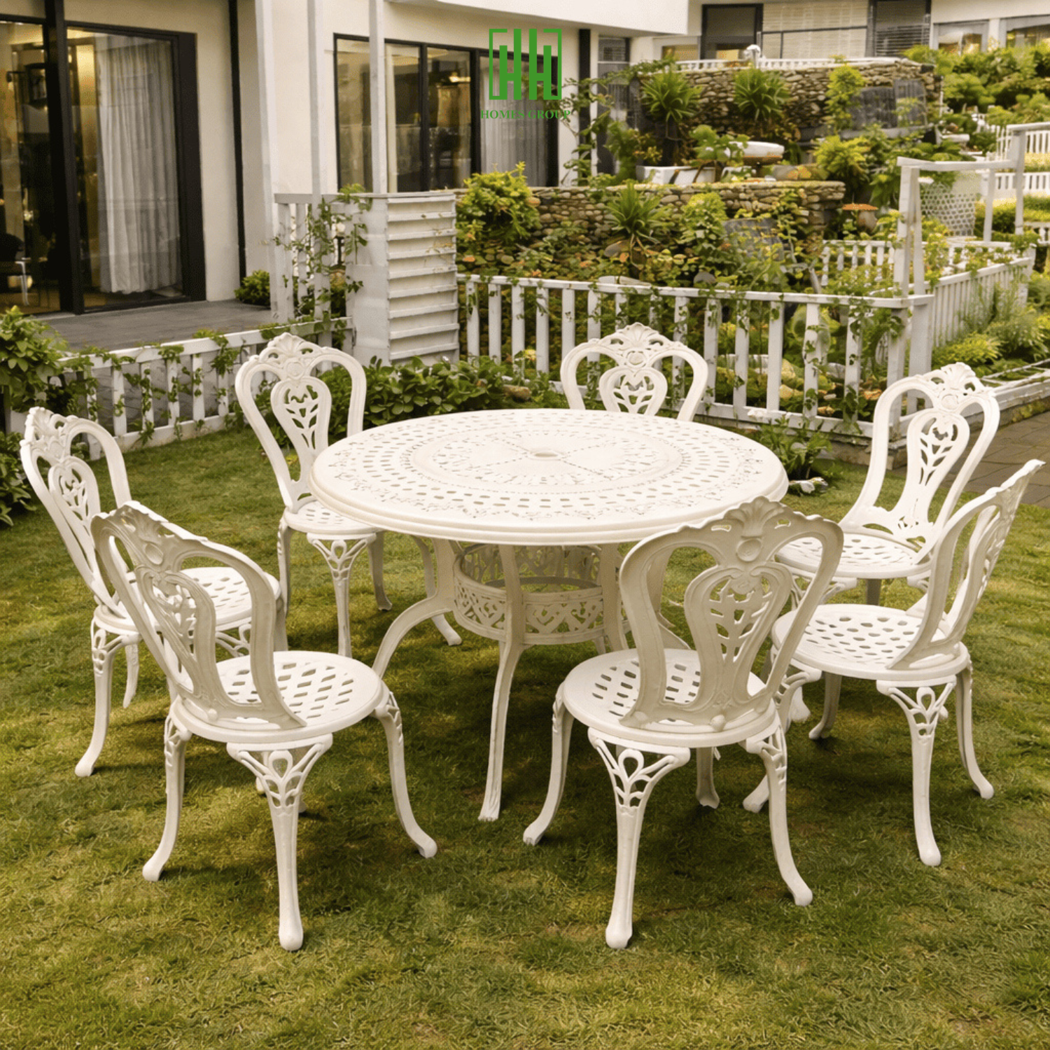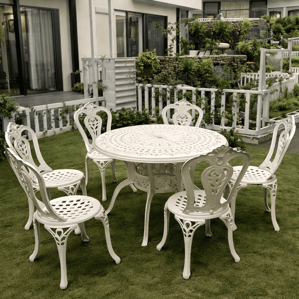 Bộ bàn ghế sân vườn mã BA-D100-6GN là dòng sản phẩm cao cấp dành cho không gian ngoài trời như sân vườn, biệt thự, quán cafe hay khu nghỉ dưỡng.