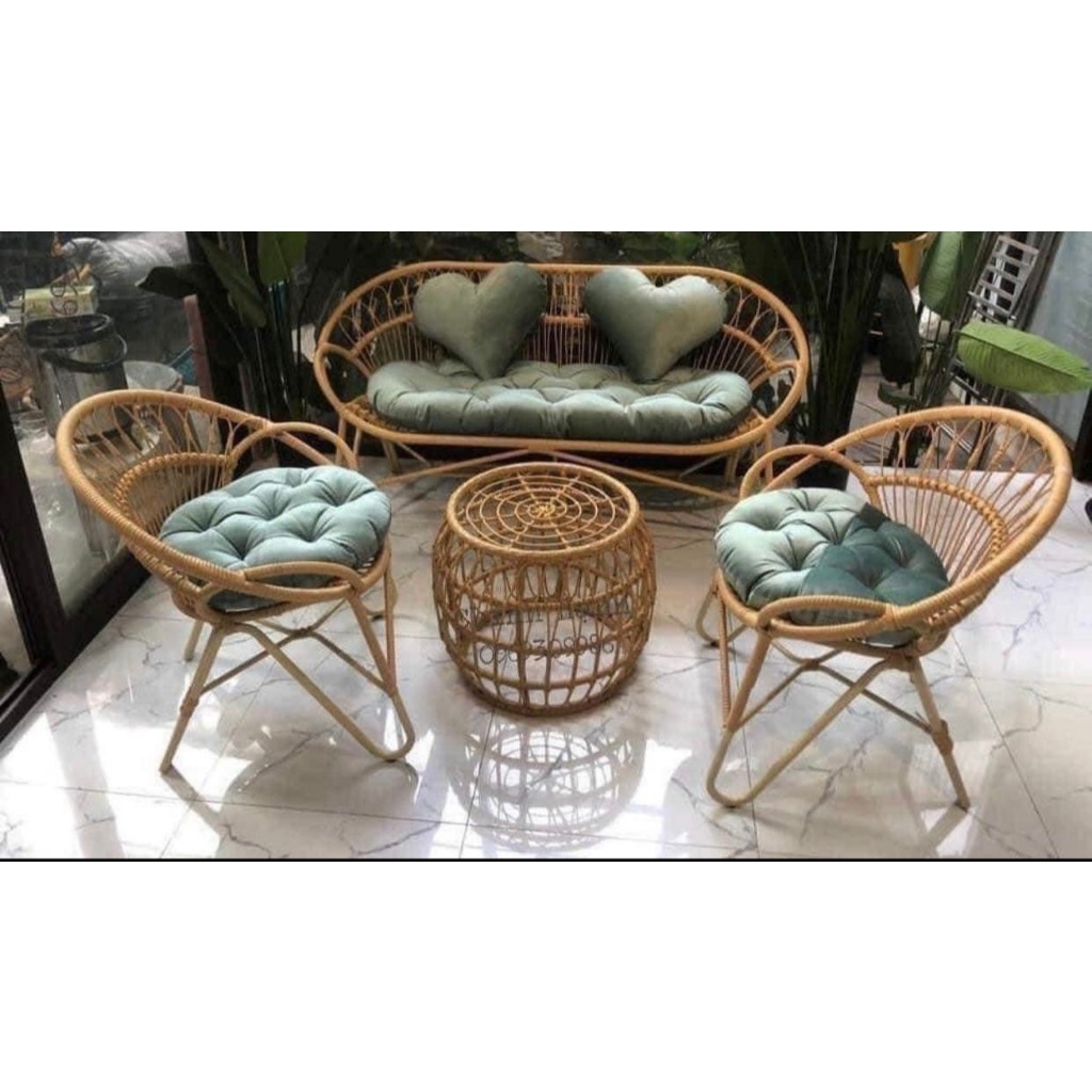 Bộ bàn ghế sân vườn 2 ghế đơn + bàn + ghế đôi mây nhựa cao cấp dùng decor sân vườn
