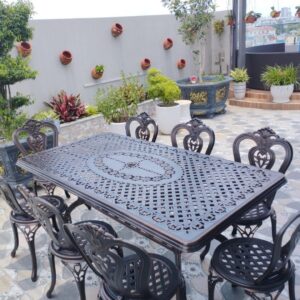 Hãy là người đầu tiên nhận xét “Bộ bàn ghế sân vườn nhôm đúc mã D175-8G, dùng ngoài trời”