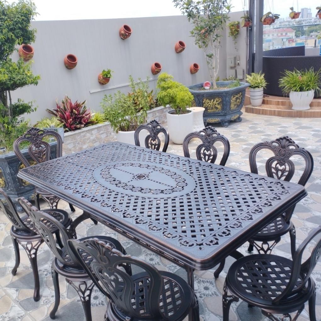 Bộ bàn ghế sân vườn nhôm đúc mã D175-8G, dùng ngoài trời