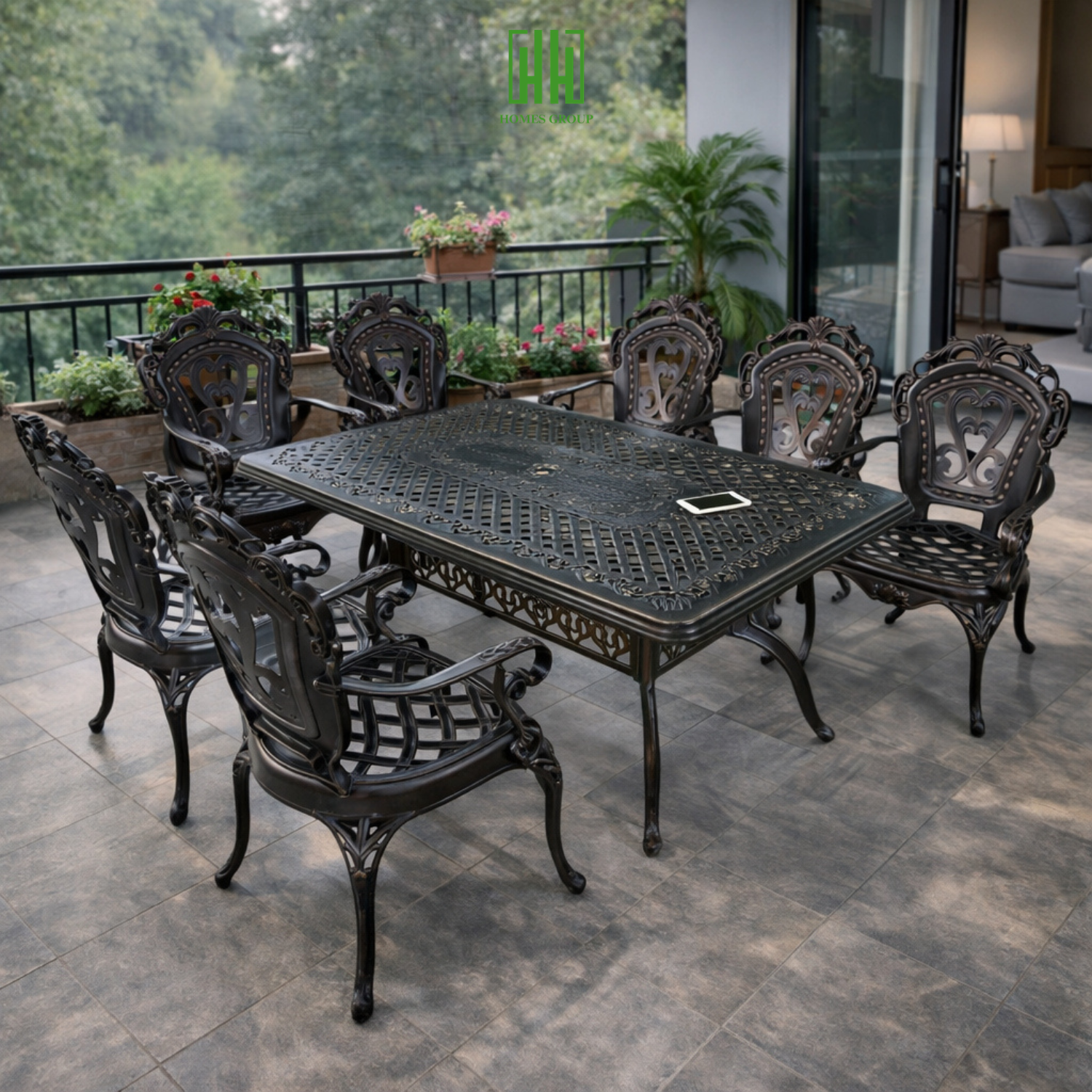 HOMESGROUP hiểu được mong muốn của nhiều người tiêu dùng nên đã mang đến cho bạn những mẫu bàn ghế sân vườn ngoài trời với thiết kế đơn giản , tinh tế, sang trọng và chất liệu nhôm đúc phù hợp với môi trường ngoài trời nắng mưa mà không lo bị han gỉ.