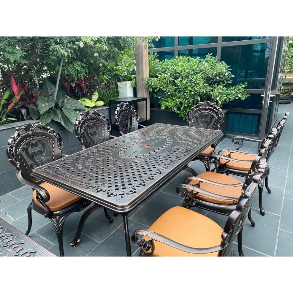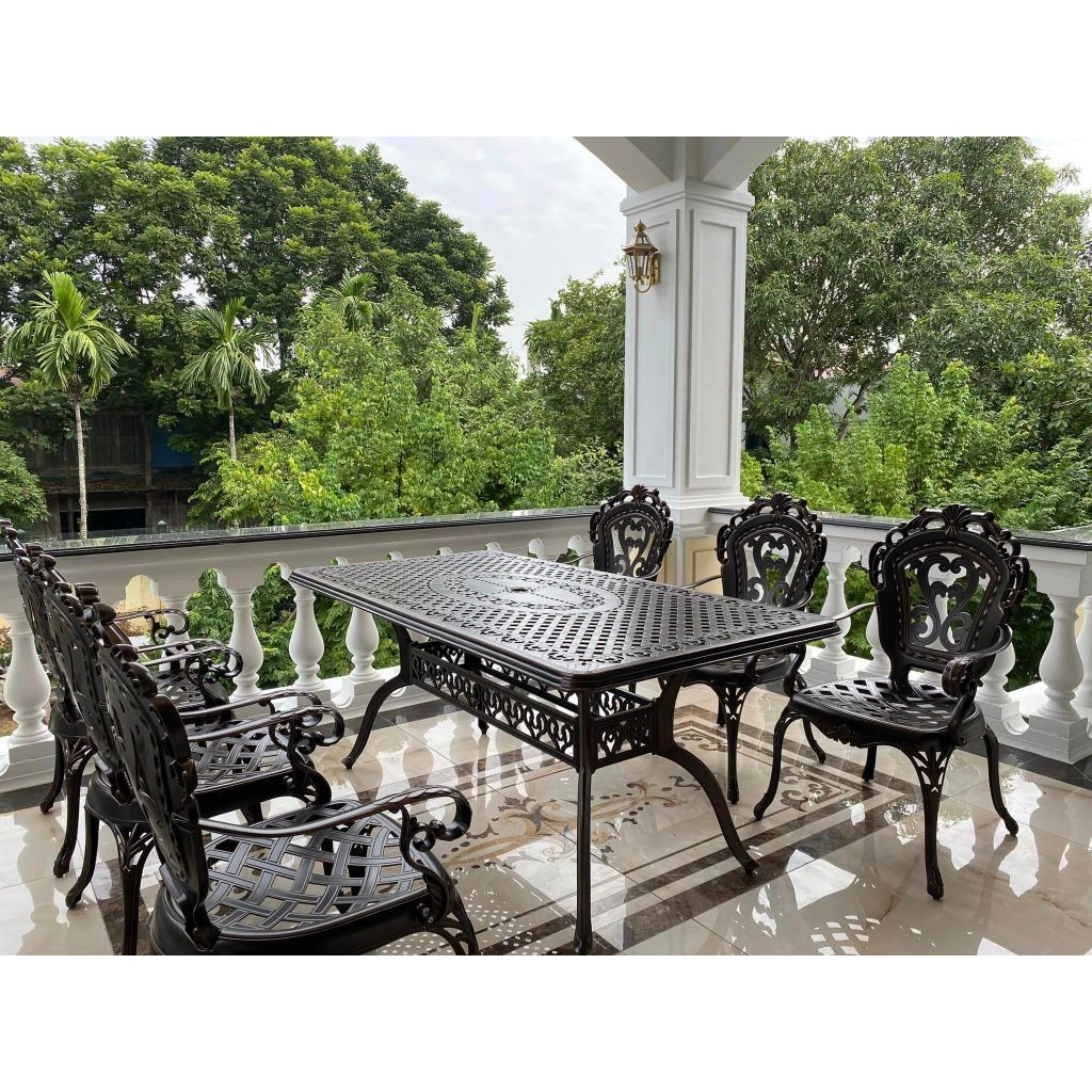 Bộ bàn ghế sân vườn nhôm đúc được các nhà thiết kế ngoại thất lựa chọn dùng để trang trí cảnh quang sân vườn theo phong cách châu âu, bởi nó không chỉ là bàn ghế để ngồi uống trà, cafe cùng các thành viên trong gia đình vào mỗi buổi sáng nó còn là vật trang trí làm nổi bật nên không gian sống trong khu vườn nhà bạn.