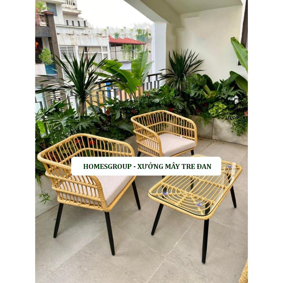 Bộ bàn ghế song to lưng vuông có tay dùng ban công sân vườn bảo hành 2 năm