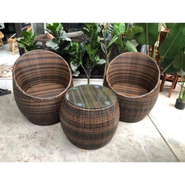 Bộ ghế trứng mây nhựa decor ban công sân vườn, phòng khách, phòng ngủ quán cafe