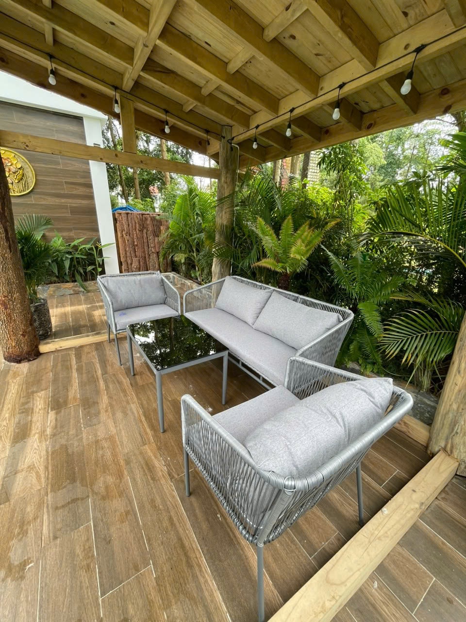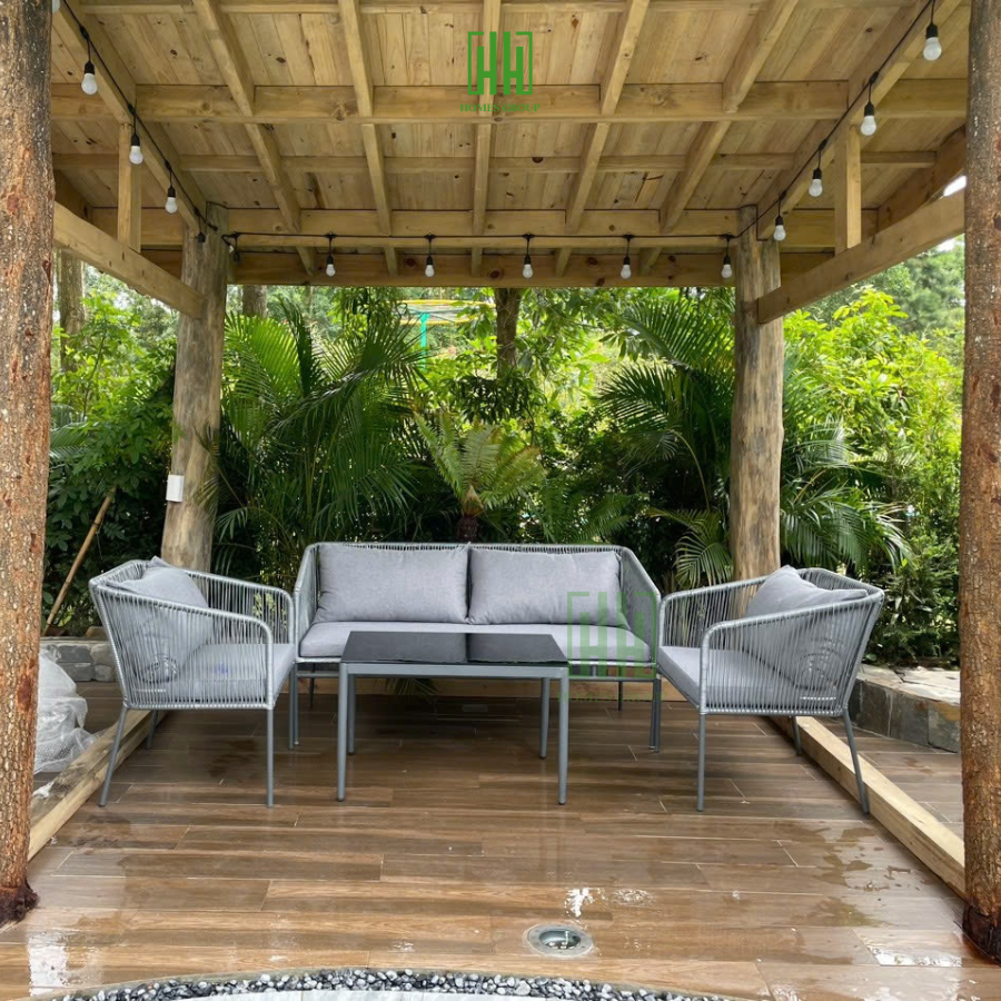 - Trang trí không gian: Với thiết kế sang trọng và màu sắc tinh tế, bộ sofa này không chỉ là một món đồ nội thất chức năng mà còn là điểm nhấn trang trí nổi bật cho phòng khách, phòng chờ, ban công hoặc sân vườn.