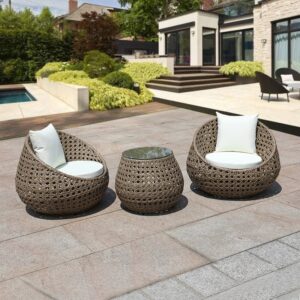 Bộ sofa trứng chim cút mây nhựa kèm nệm dùng ban công sân vườn khu nghỉ dưỡng