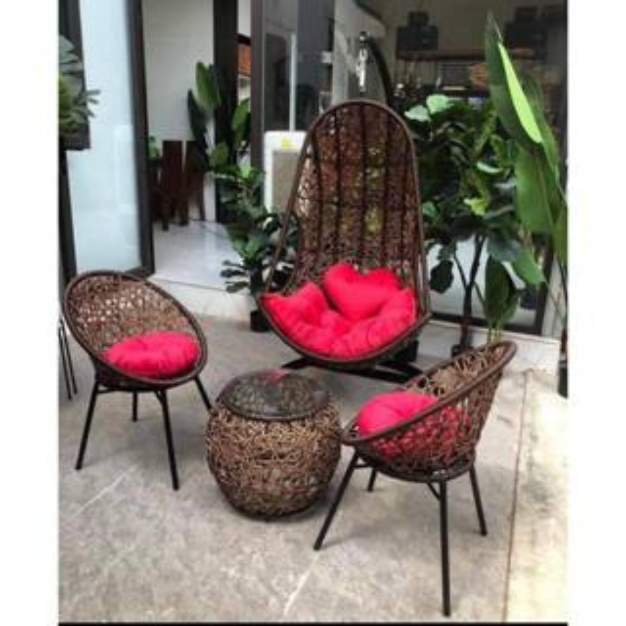 Bộ xích đu kèm bàn ghế sân vườn mây nhựa cao cấp dùng decor sân vườn quán cafe sang trọng