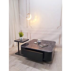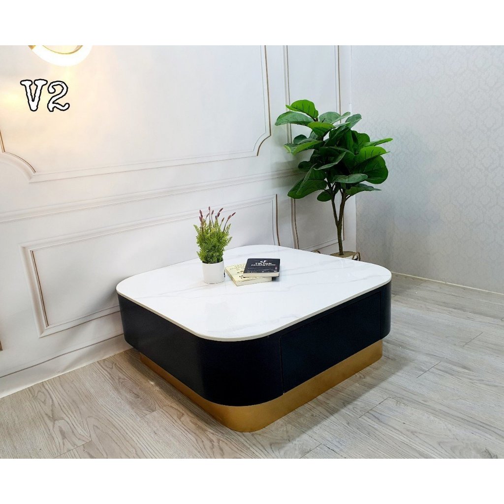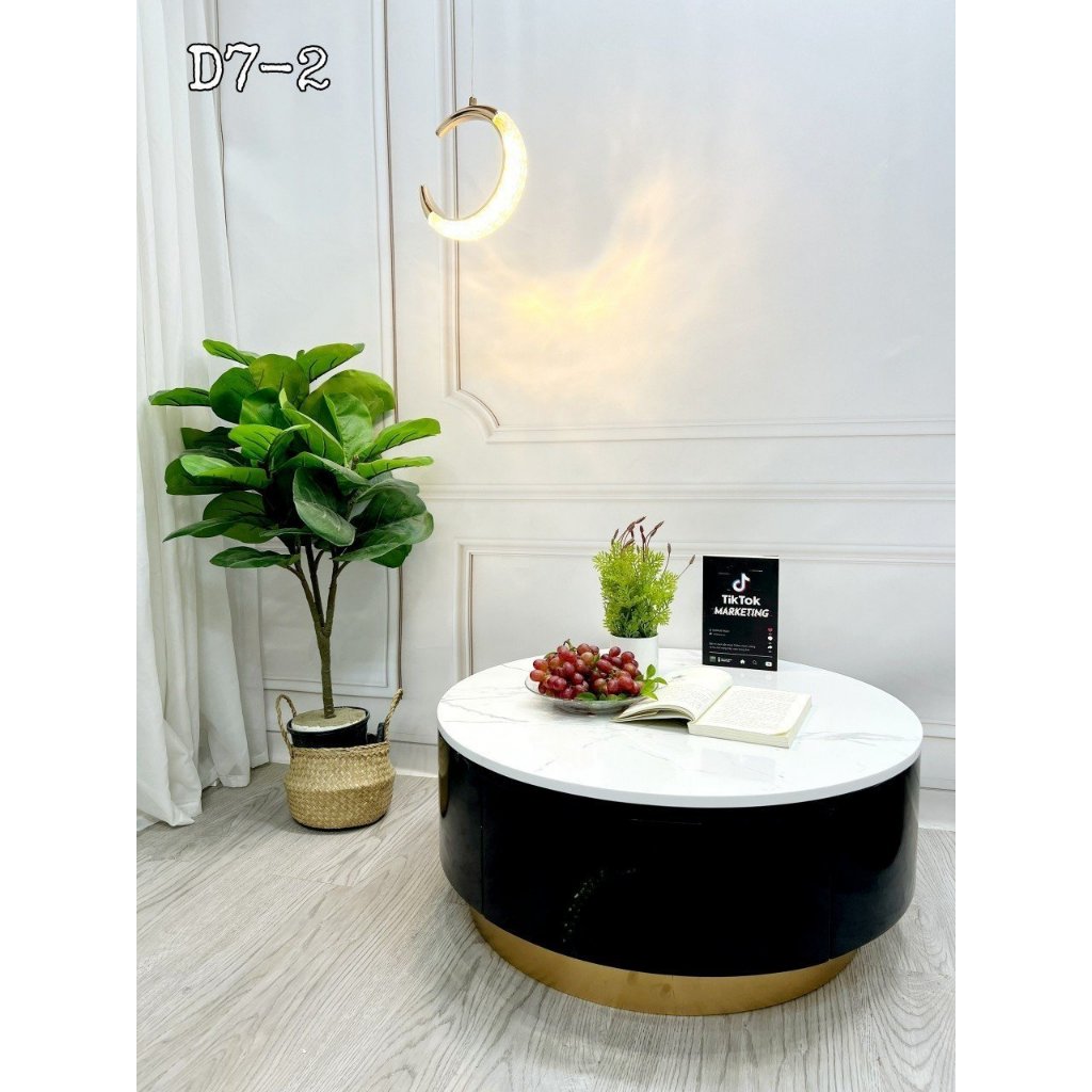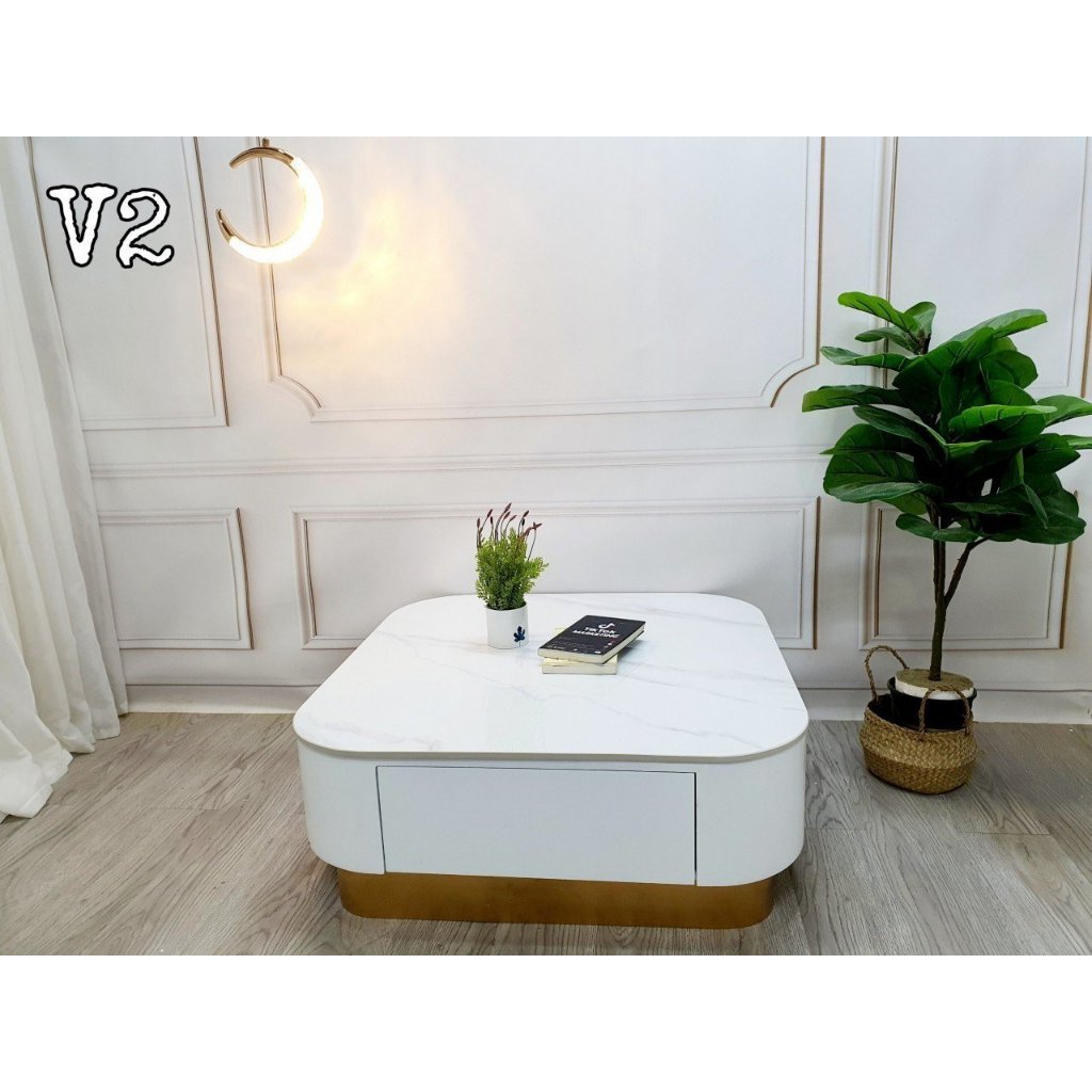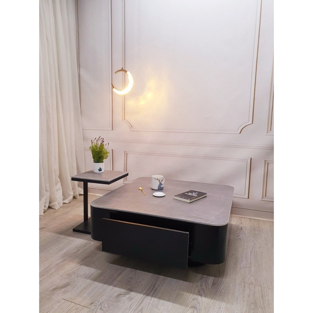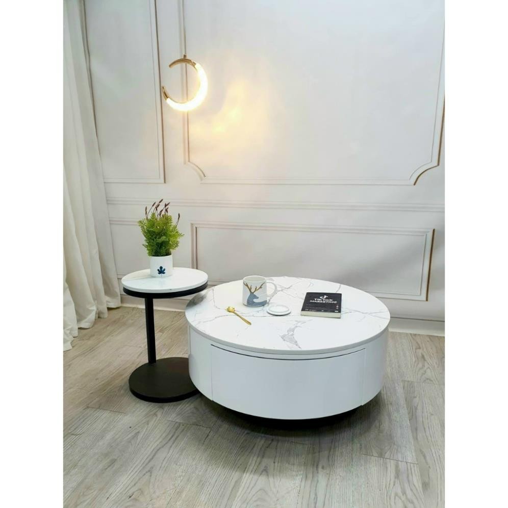 Cặp bàn trà sofa hộp tròn, mặt đá 3D, có ngăn kéo