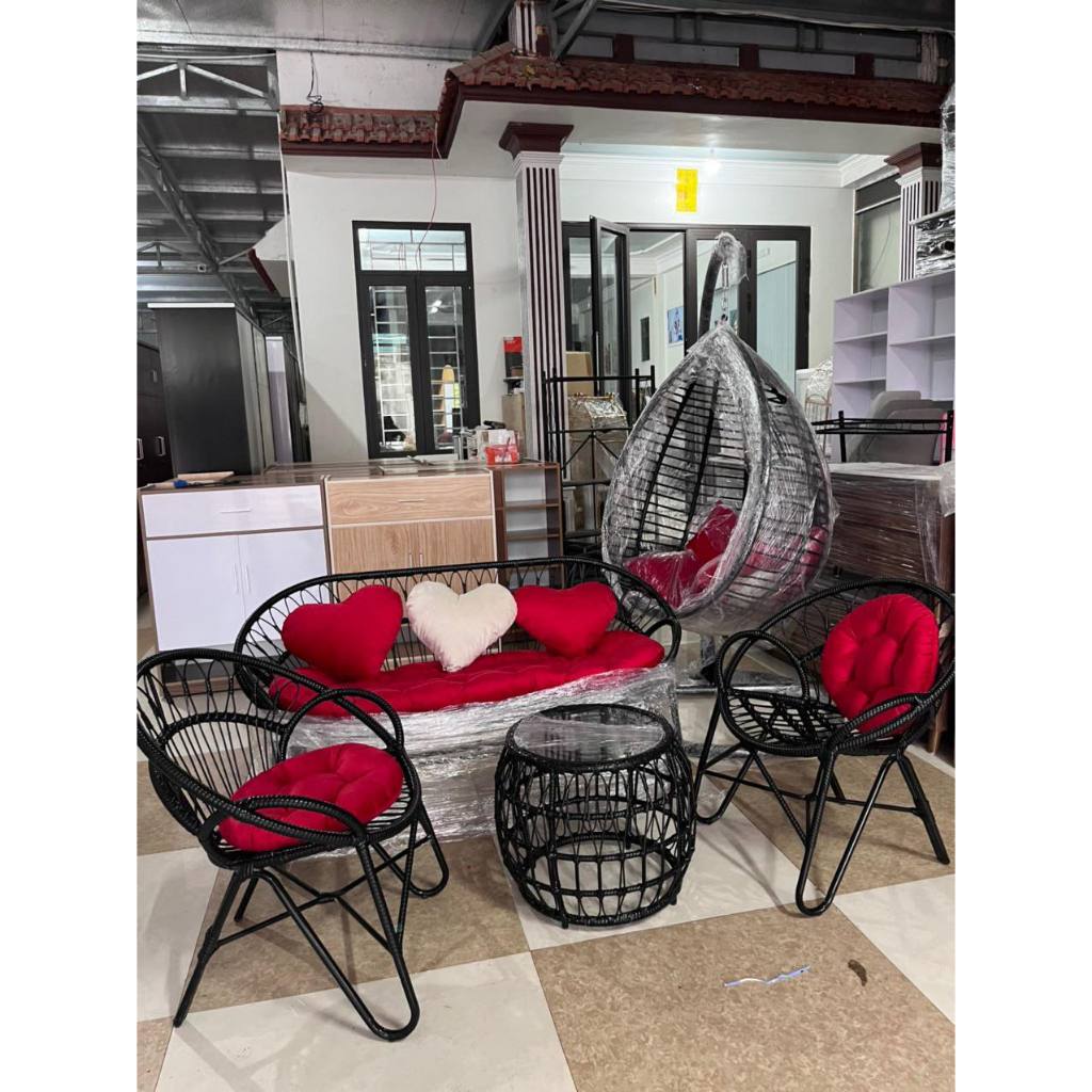 Combo bàn ghế xích đu giả mây khung thép decor nội thất ban công sân vườn phòng khách sang trọng