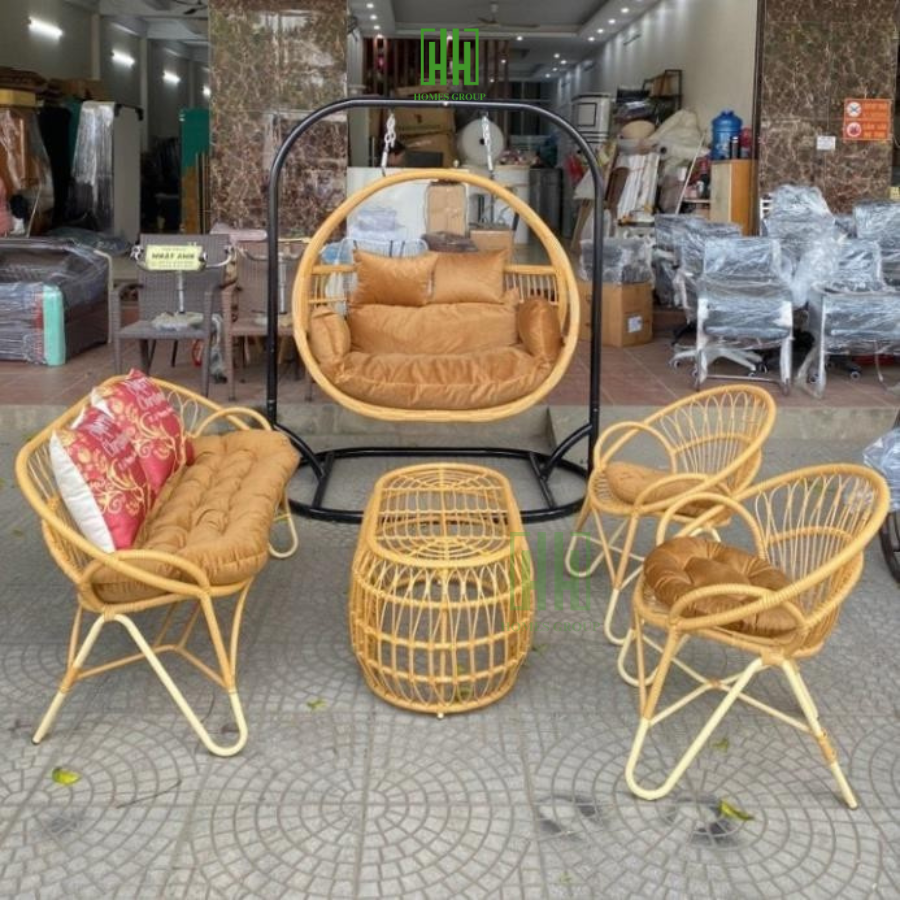 - Đa năng: Với thiết kế nhỏ gọn và chất liệu bền bỉ, combo bàn ghế xích đu mây nhựa phù hợp với nhiều không gian khác nhau, từ ngoài trời đến trong nhà, mang đến sự tiện lợi và thoải mái cho người dùng.