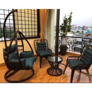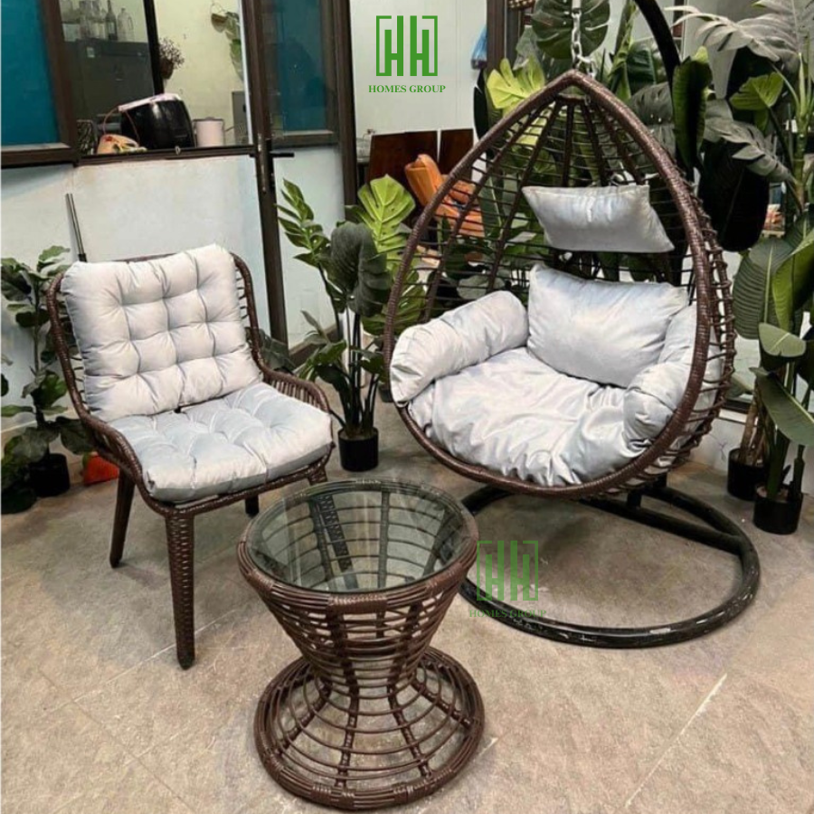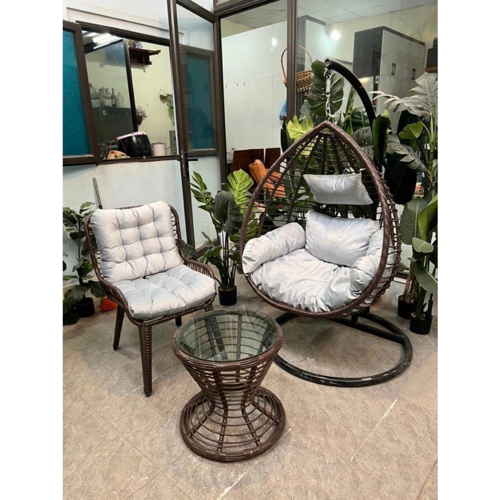 Combo Xích Đu + Ghế + Bàn Mây Khung Kim Loại Sơn Tĩnh Điện Đan Bằng Mây Nhựa Nguyên Sinh