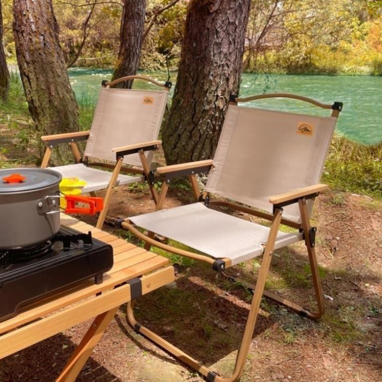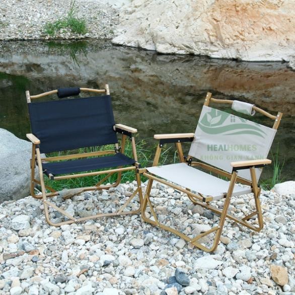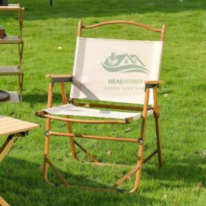 Ghế Camping Gấp Gọn, ghế gấp gọn dã ngoại có tựa lưng, khung nhôm tay cầm gỗ chắc chắn