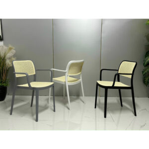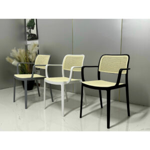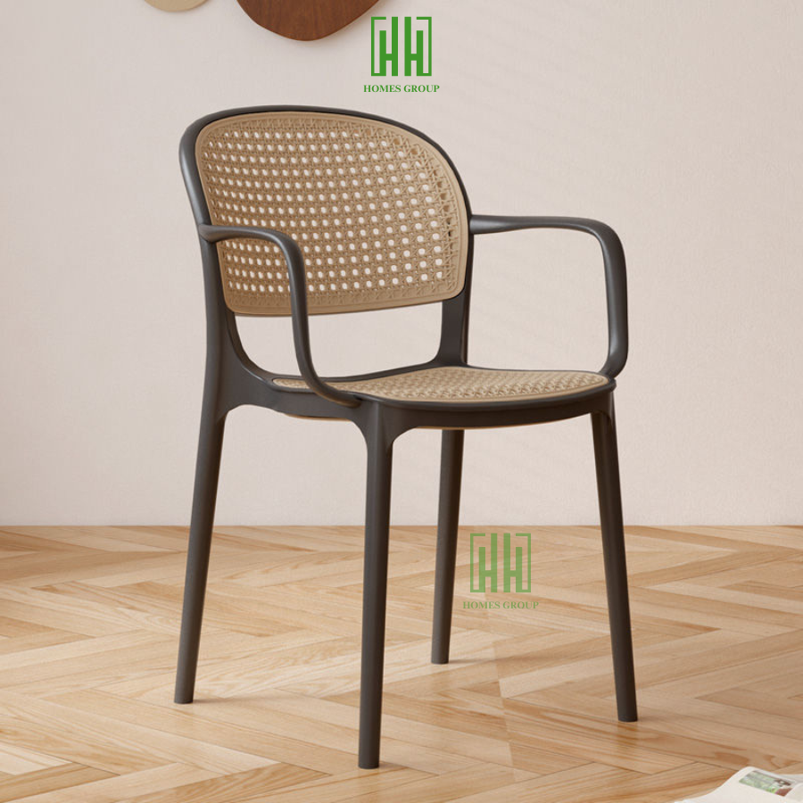 Ghế giả mây có tay – Ghế nhựa cafe, văn phòng, ghế ăn, đúc nguyên khối giá tốt
