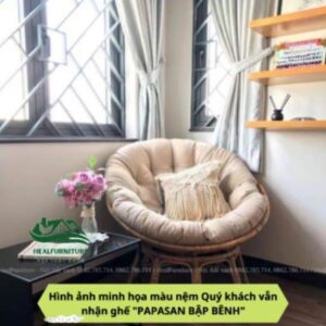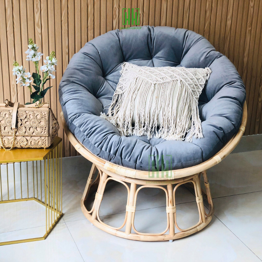 Ghế lười bập bênh thư giãn Papasan mây, decor ban công, phòng khách
