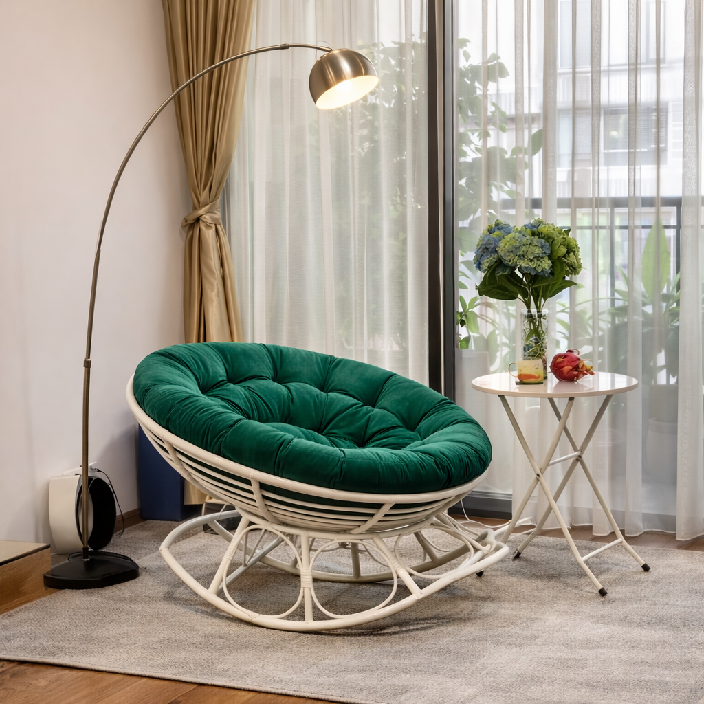 Ghế lười Papasan bập bênh là phiên bản nâng cấp từ mẫu ghế Papasan truyền thống, kết hợp cùng chân bập bênh nhẹ nhàng, mang lại trải nghiệm thư giãn tối đa.