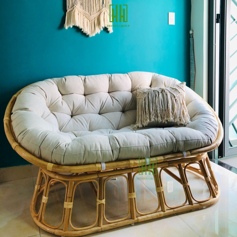 Ghế lười thư giãn mây papasan đôi 1M8 decor ban công nằm thư giãn, trang trí phòng khách