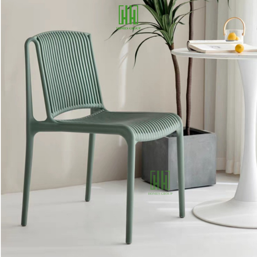 Ghế nhựa cafe văn phòng bàn ăn cao cấp đúc nguyên khối tựa lưng cao xếp chồng giá rẻ