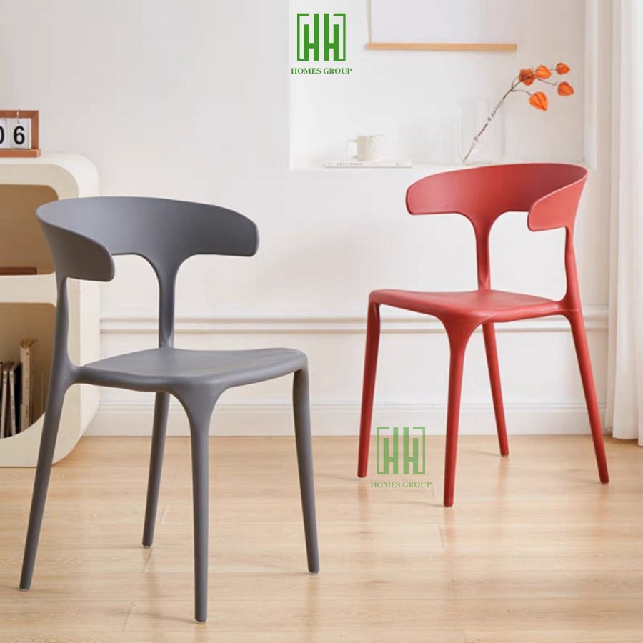 Ghế nhựa cafe văn phòng bàn ăn cao cấp đúc nguyên khối tựa lưng cao xếp chồng giá rẻ