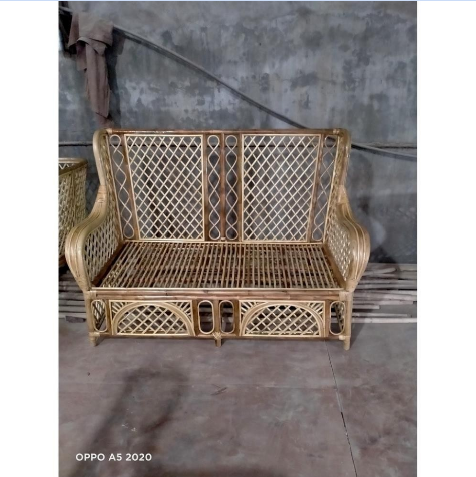 Ghế Sofa mây đôi HomesGroup hoạ tiết trám chất liệu song mây SFMN01