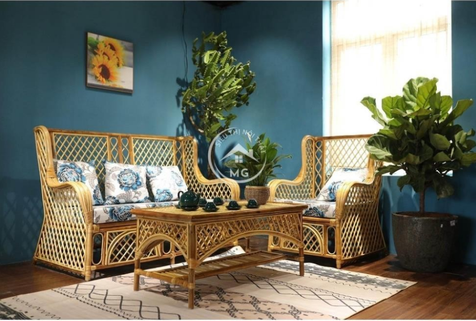 – Chất liệu: Mây mật đã qua chà vỏ, được sơn phủ PU 3 lớp. Chất nệm mút cứng có vỏ nệm nhung hoặc thô